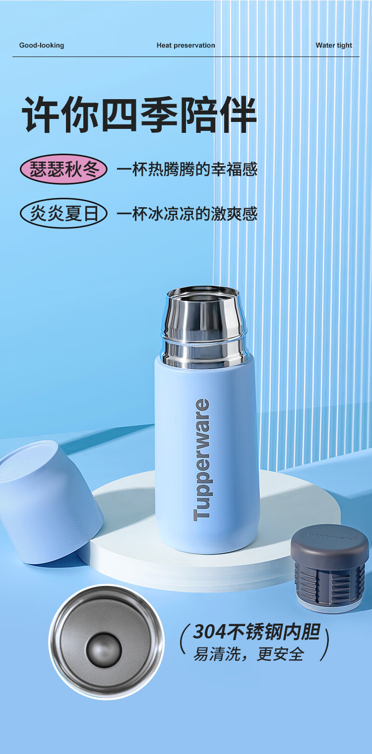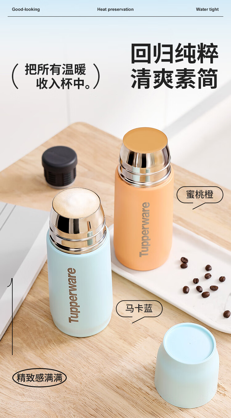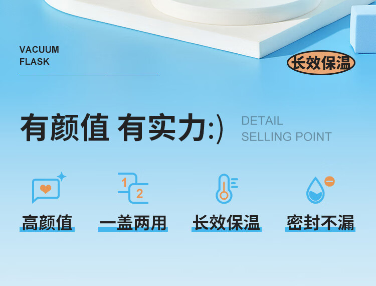 密封性良好,长效保温;高颜值,一盖两用;304食品级不锈钢内胆,安全易清洁