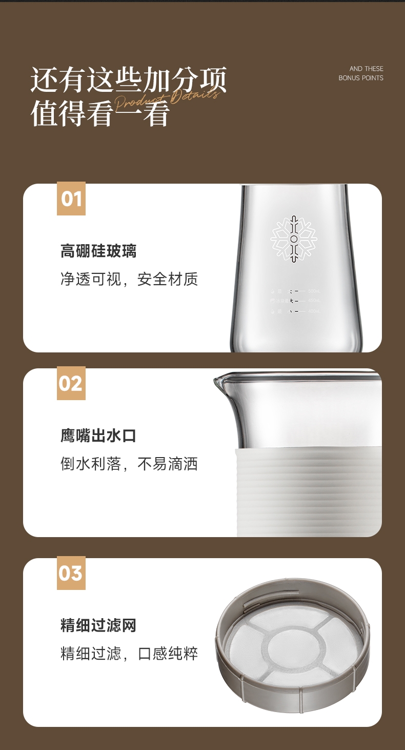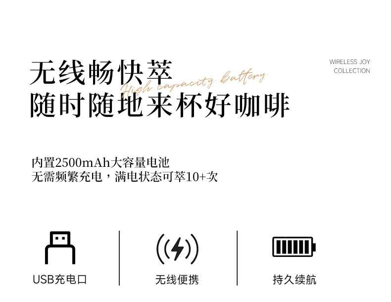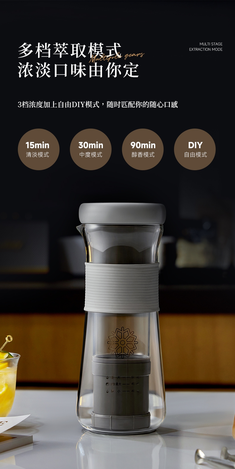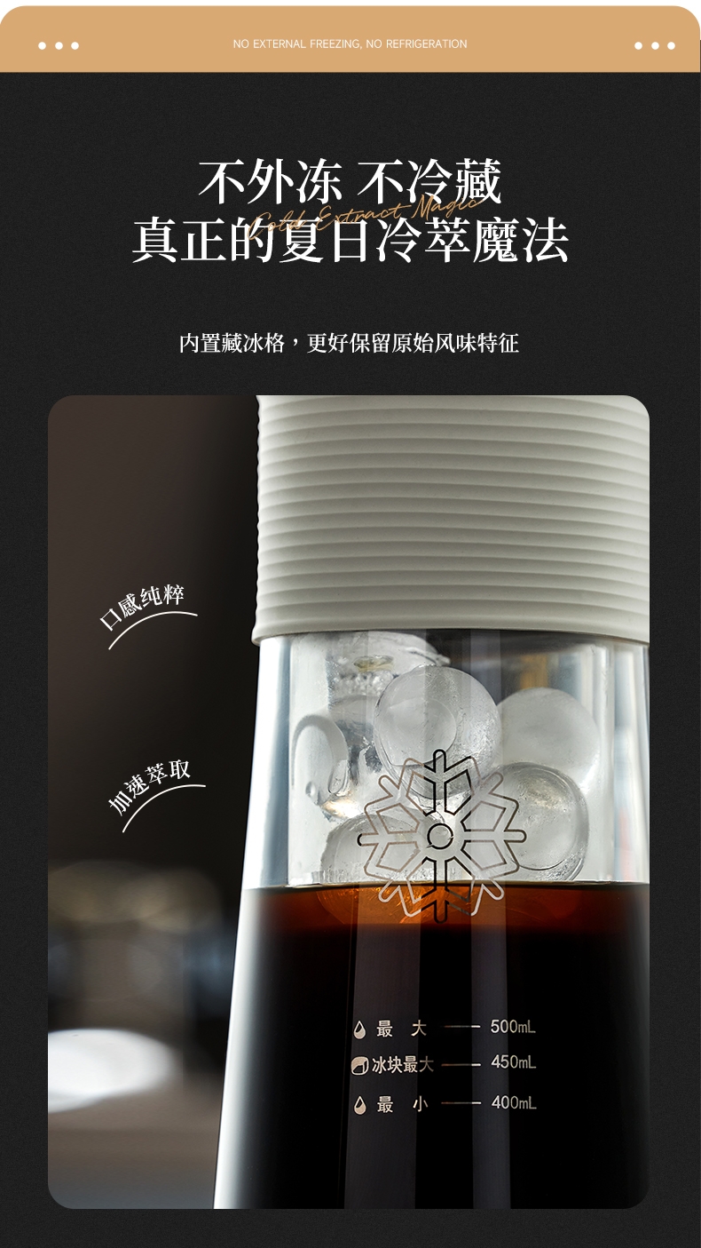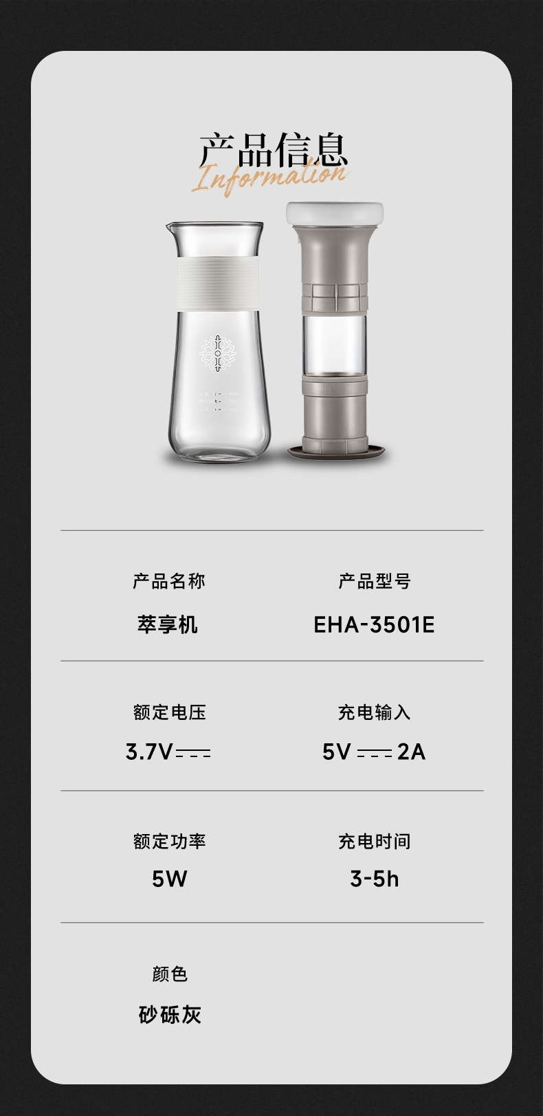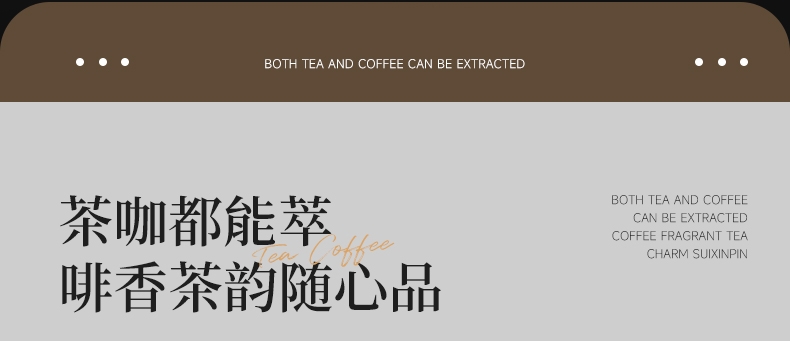 双击开启,15分钟速萃,茶咖皆可萃取;创新萃取技术,真空抽压,萃出浓醇;持久续航,内置2500mAh大容量电池