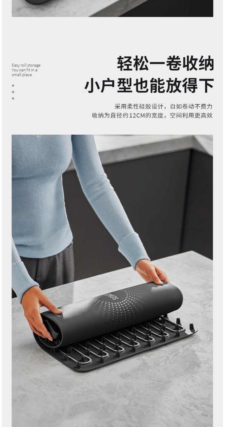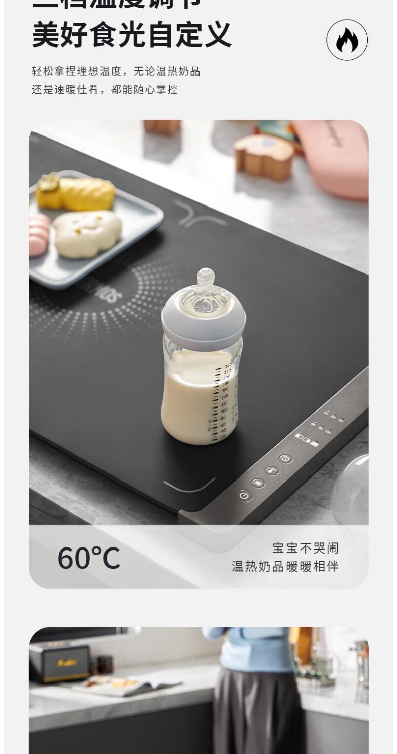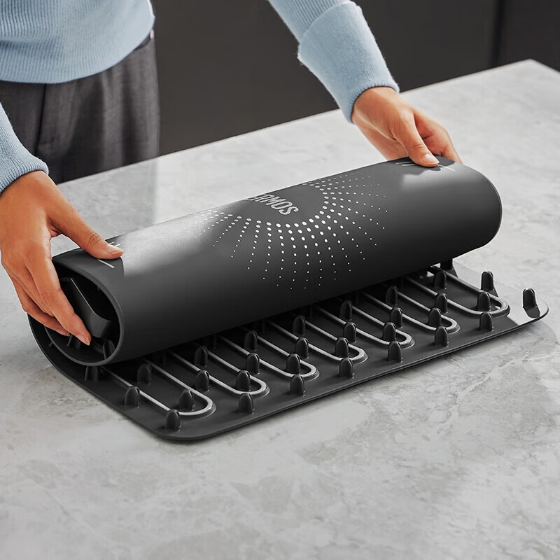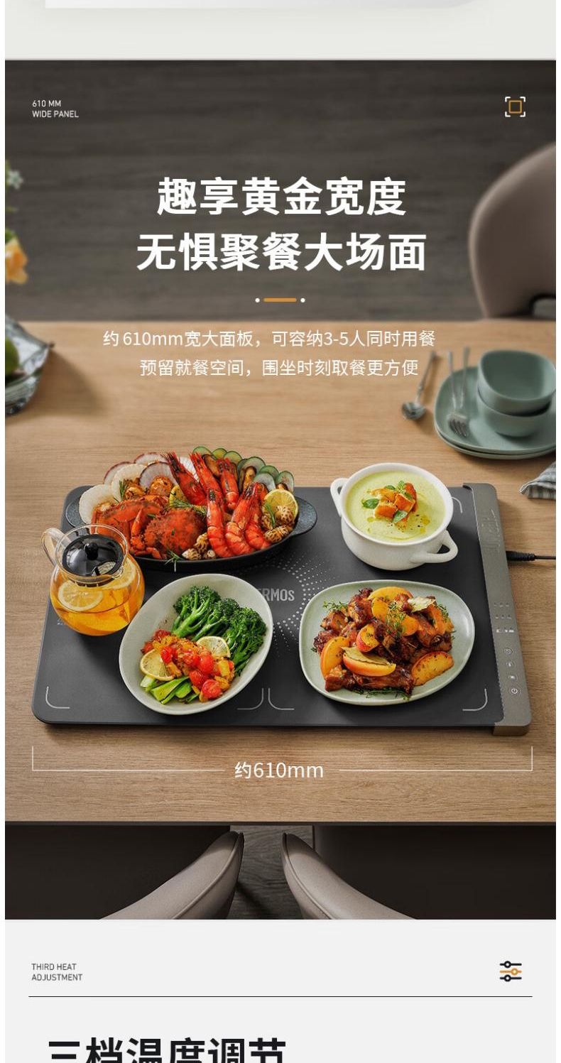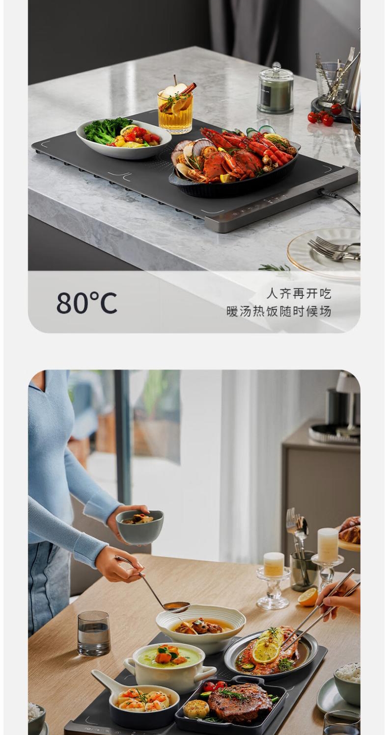 NTC自动控温系统,可单独控制左/右进行加热;6mm超薄设计,有弹性,可卷曲收纳;内置硅胶发热丝,边缘有防烫设计