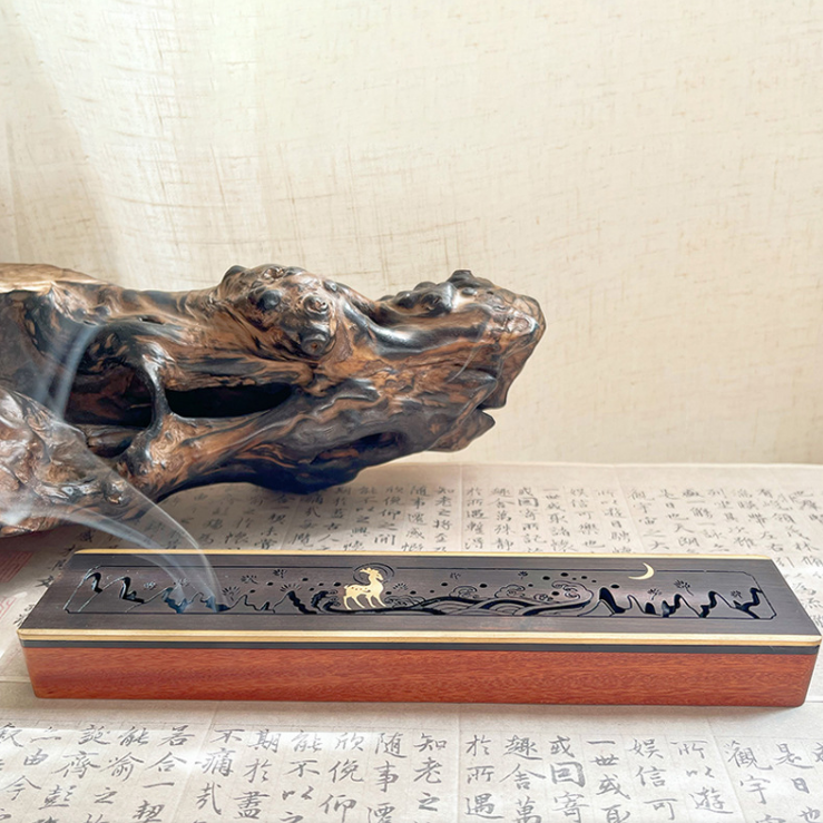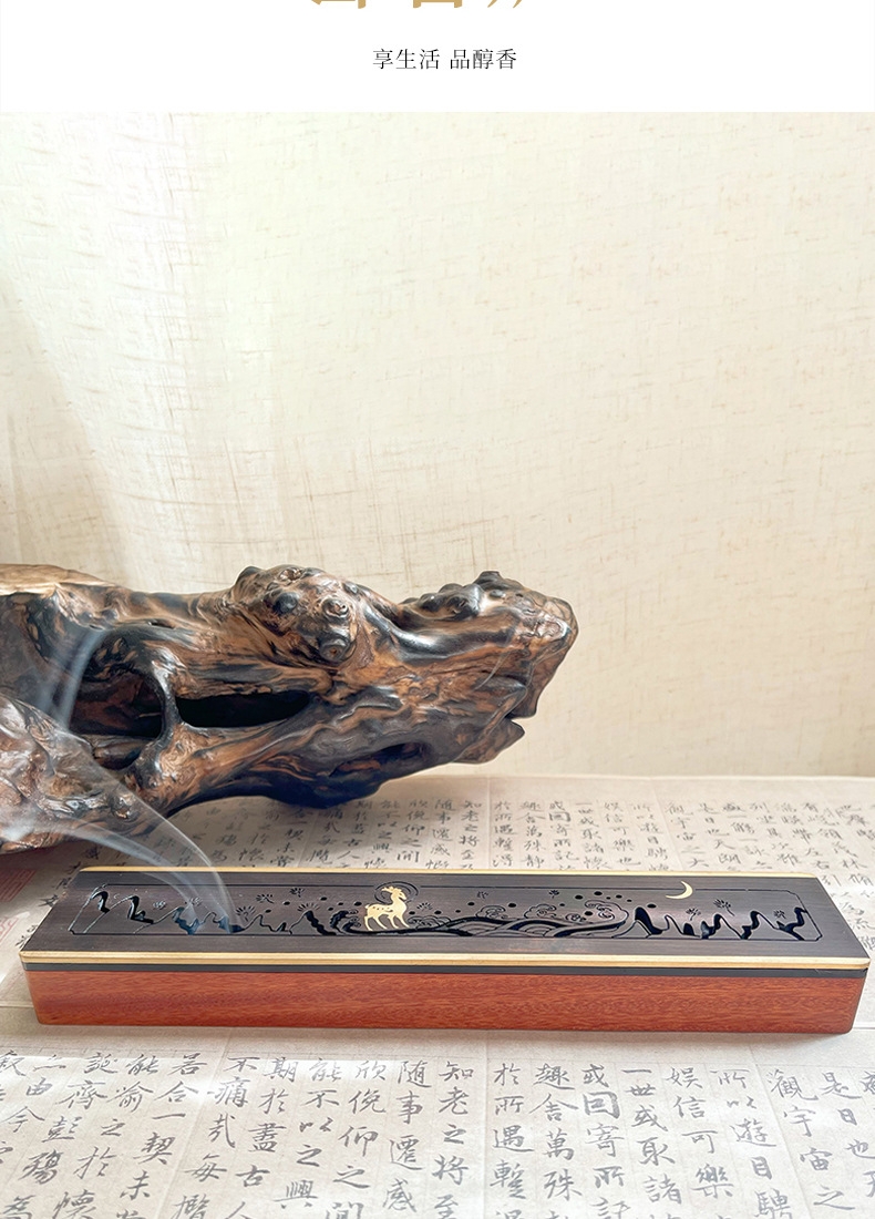 尚元堂 九色鹿经图香具两件套红木熏香炉JZZ216