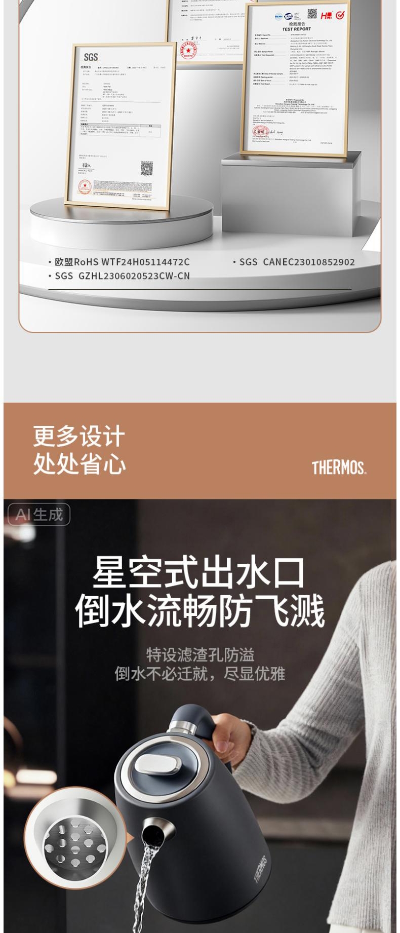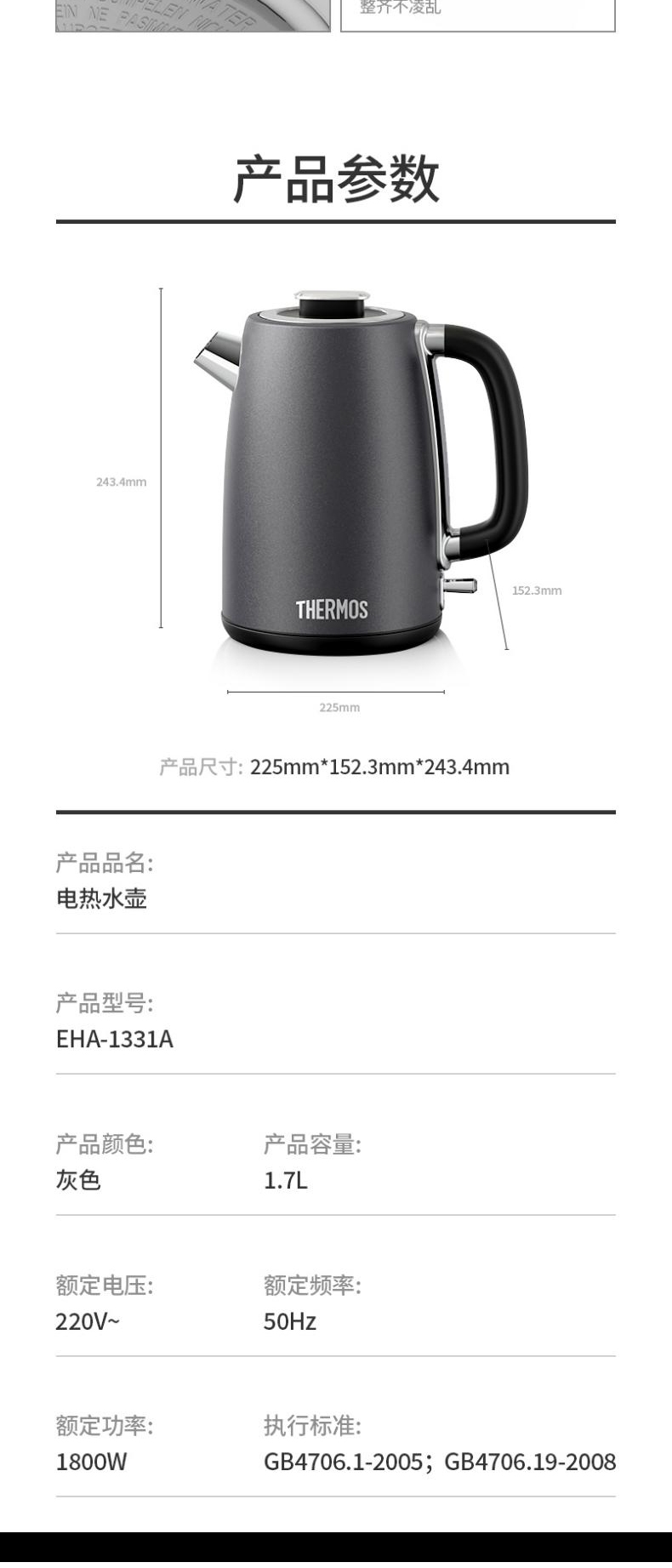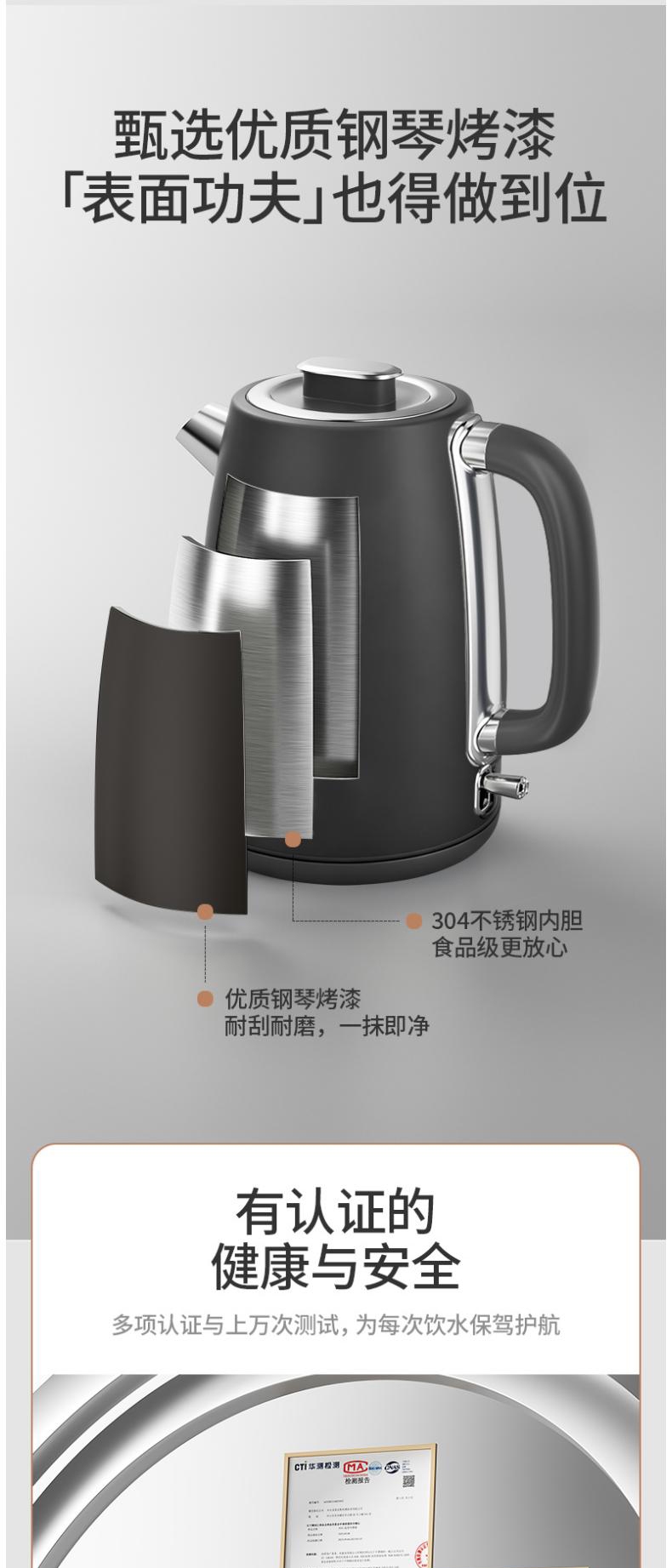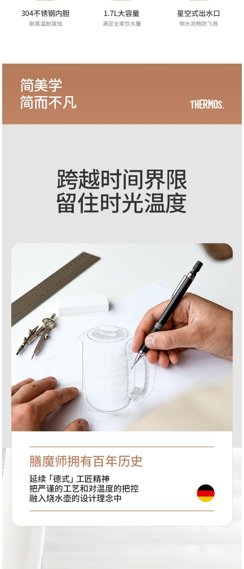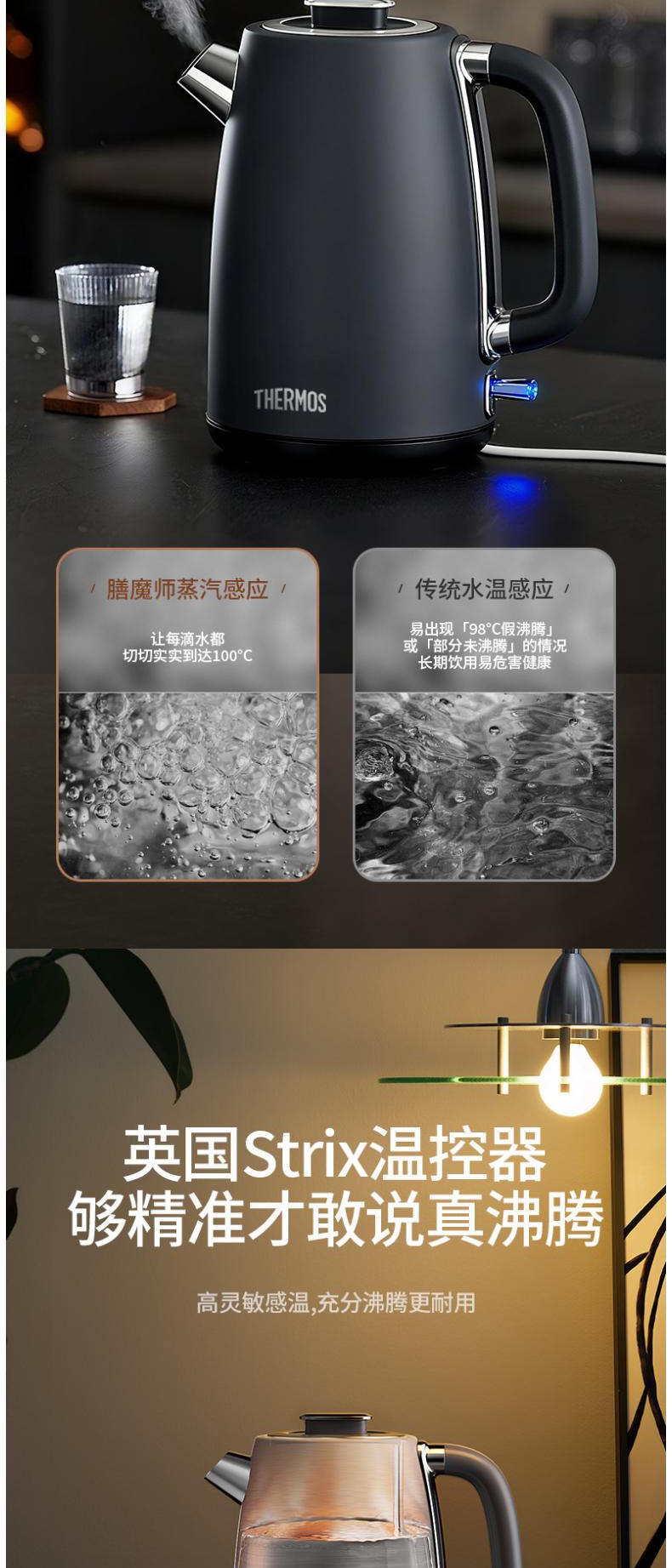 英国strix温控器,更精准更耐用;316不锈钢内胆,耐高温耐腐蚀;1.7L大容量,满足全家饮水量