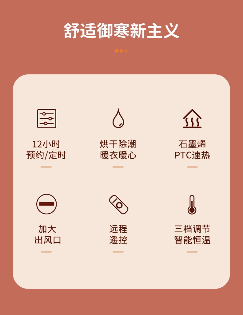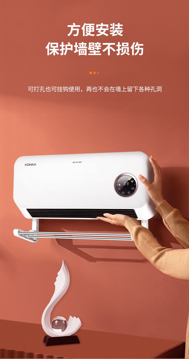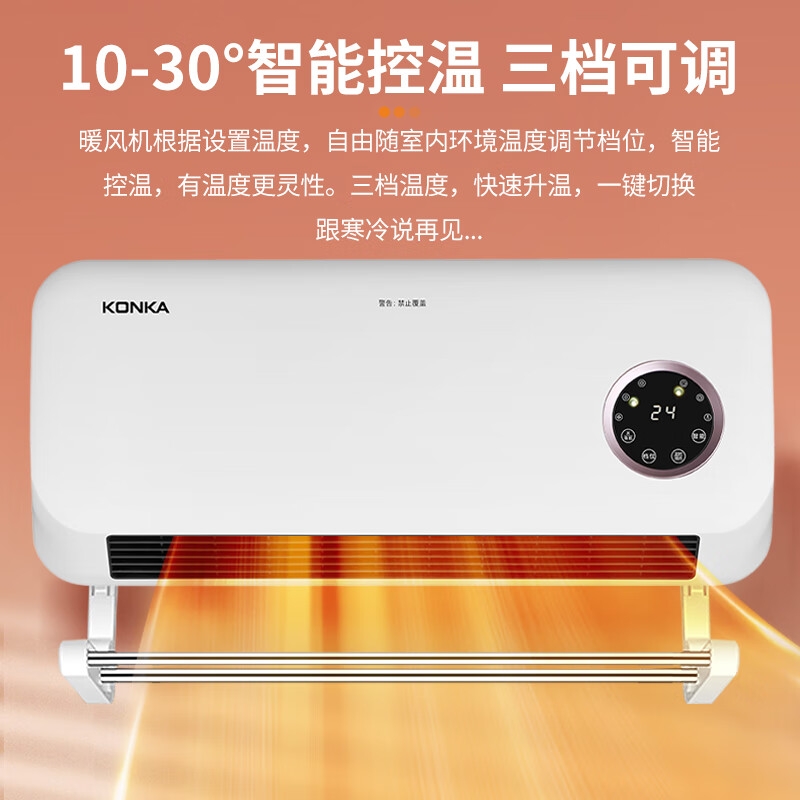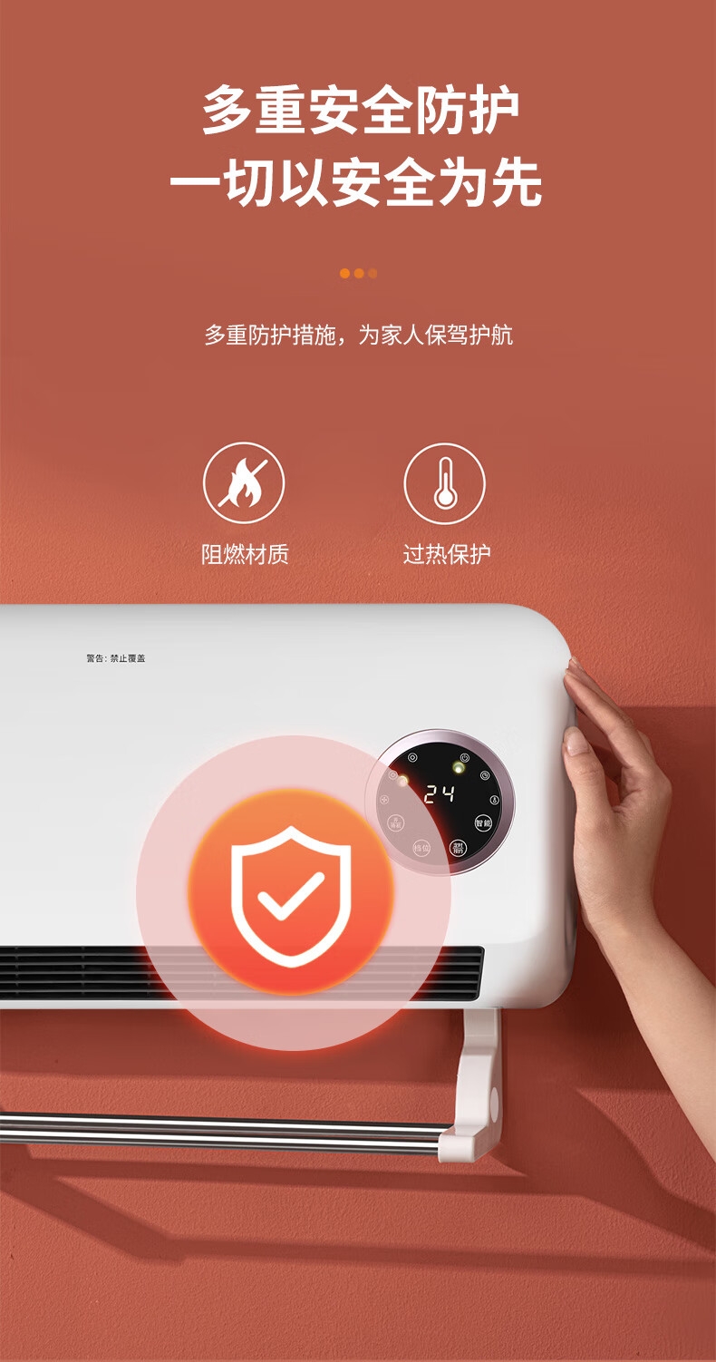 三档位开关;壁挂台式,多场合适用; 即开即热
