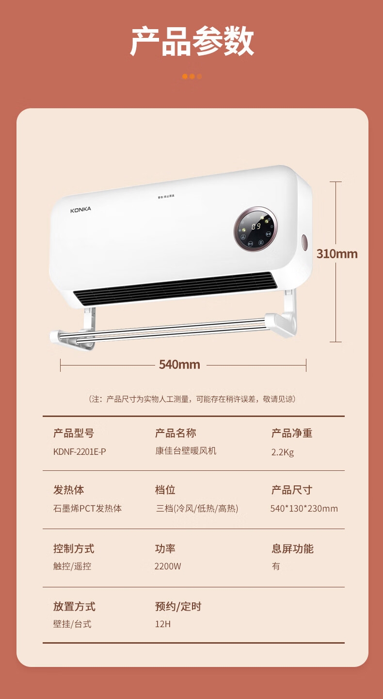 康佳 家用石墨烯壁挂暖风机KDNF-2201-P/KDNF-2201-E-P/KDNF-2201-W-P