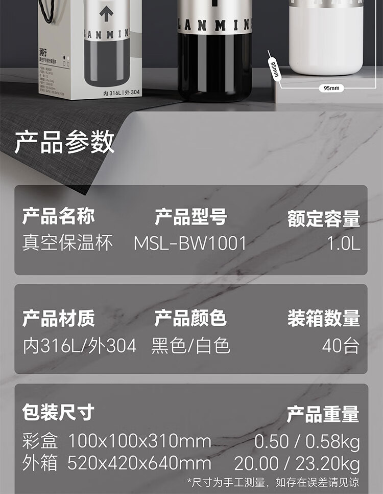 铭仕朗 大容量不锈钢保温杯MSL-BW1001