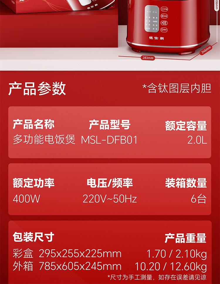 铭仕朗 红韵炊智能电饭煲MSL-DFB01