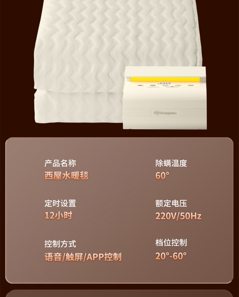 水暖速热技术;60°高温除螨;语音,APP,触摸控制