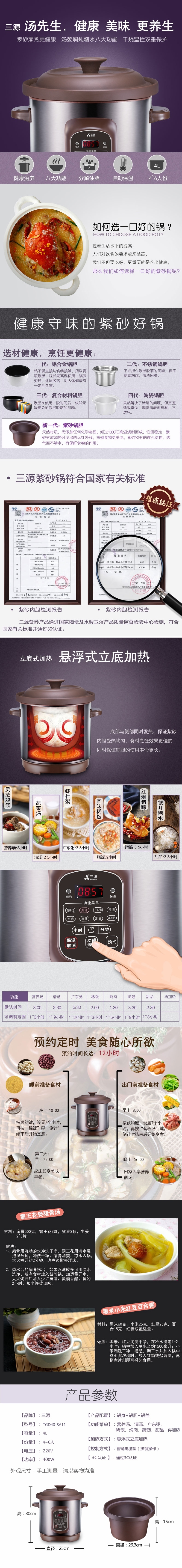 三源 天然矿土紫砂汤锅电脑型TGD40-SA11