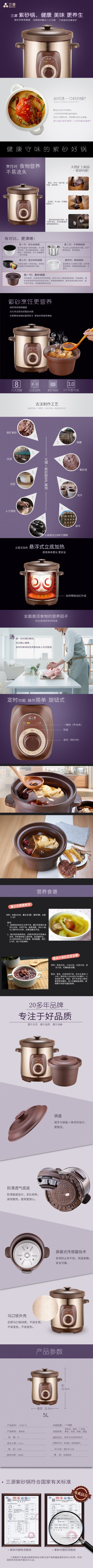 三源 天然矿土紫砂电汤锅带定时器TG50-T1