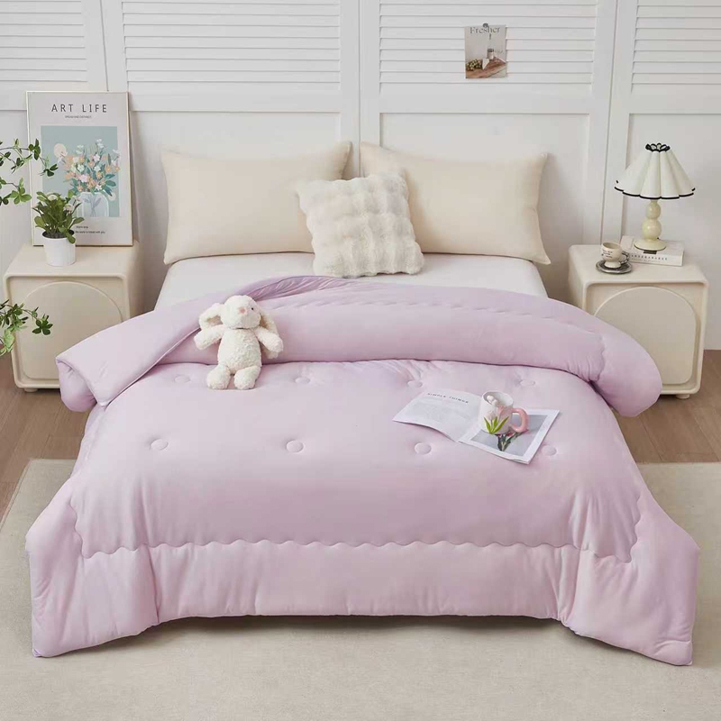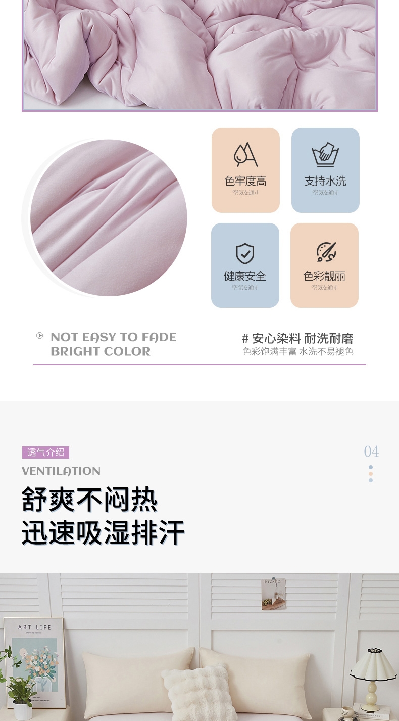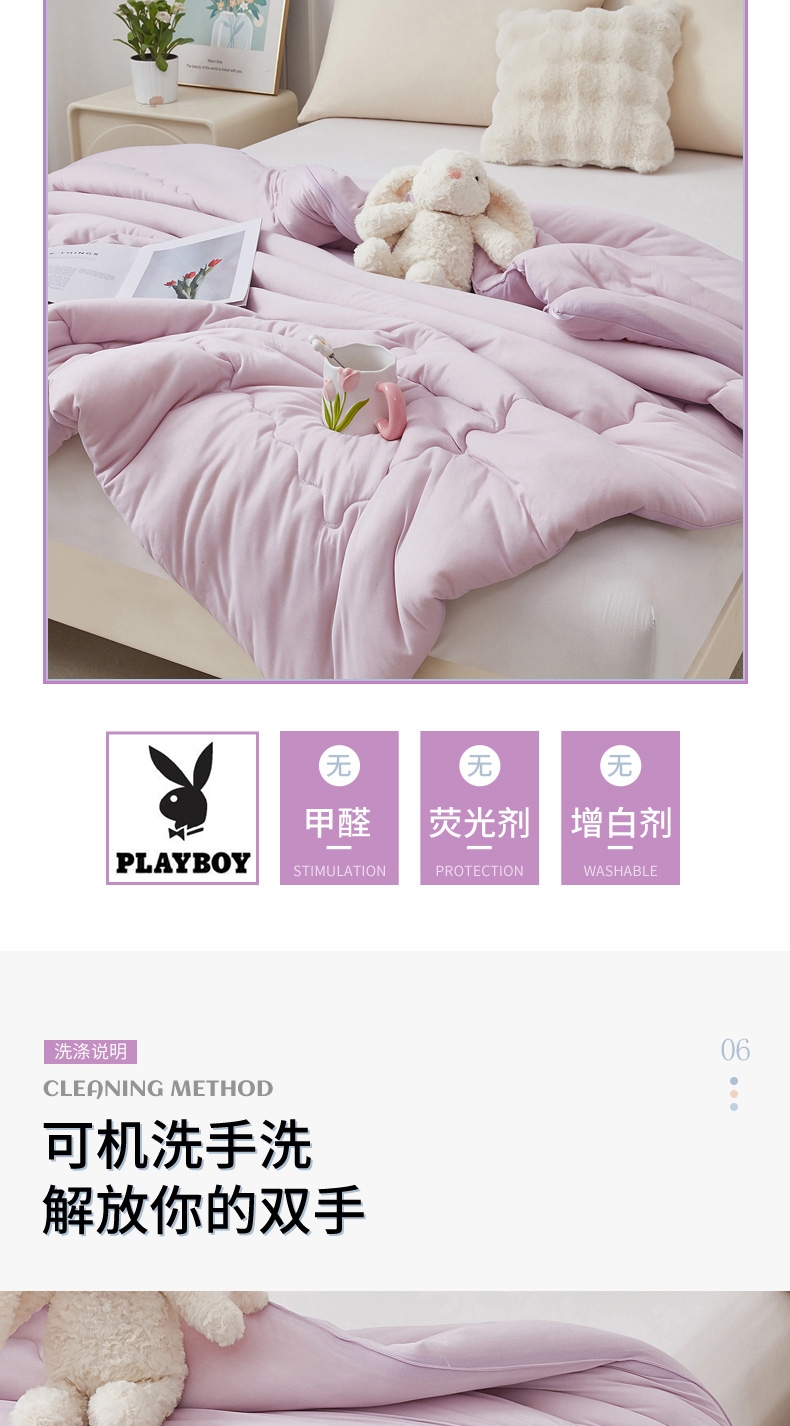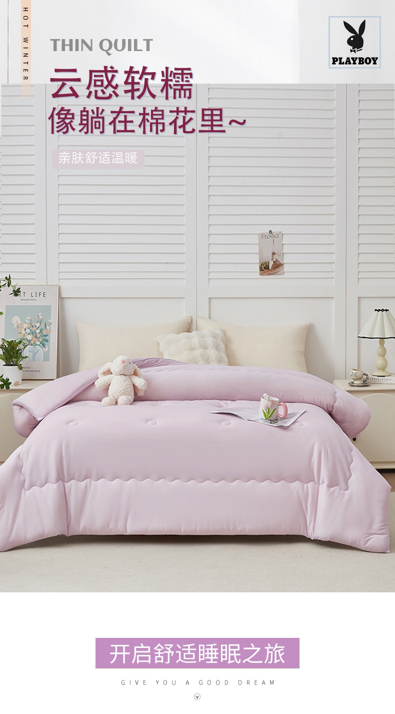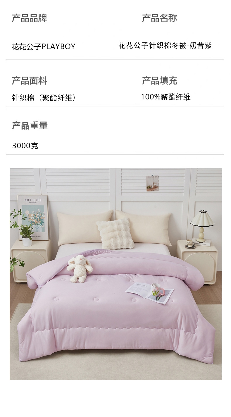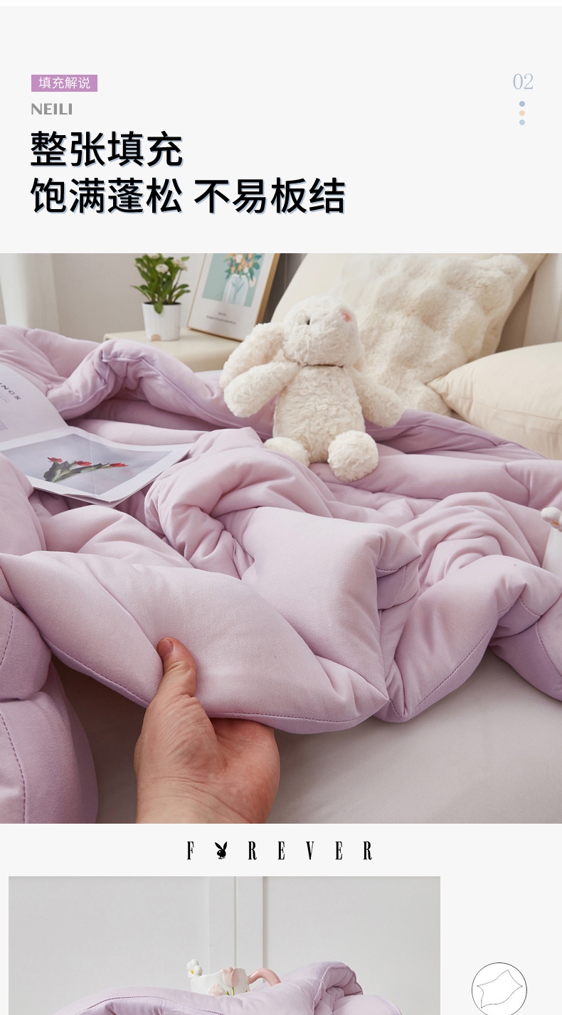 纳米抗菌纤维填充,饱满蓬松,透气好,被芯轻如浮云,;面料采用超柔针织棉材质,温和柔软,裸睡舒适,弹力包;立体绗缝,锁定纤维,不易变形结团,热能储存,蓬松柔