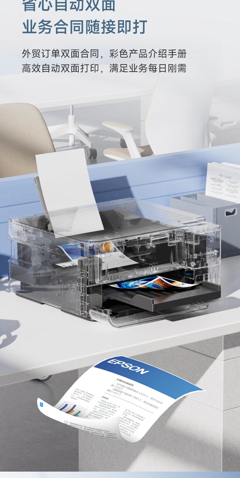高效自动双面 品质办公臻选;更省电·更耐用·更环保;普通纸、照片纸、厚纸、不干胶等都能适应;1.44英寸彩色液晶屏 操作简单易懂职场小白也会用