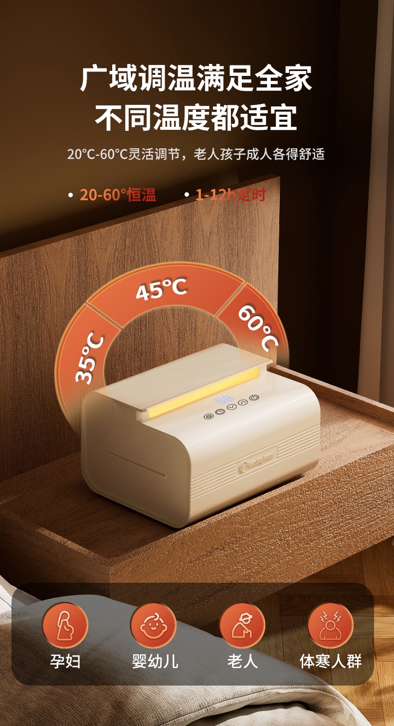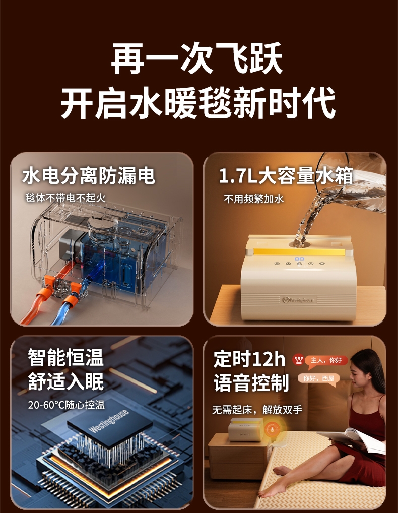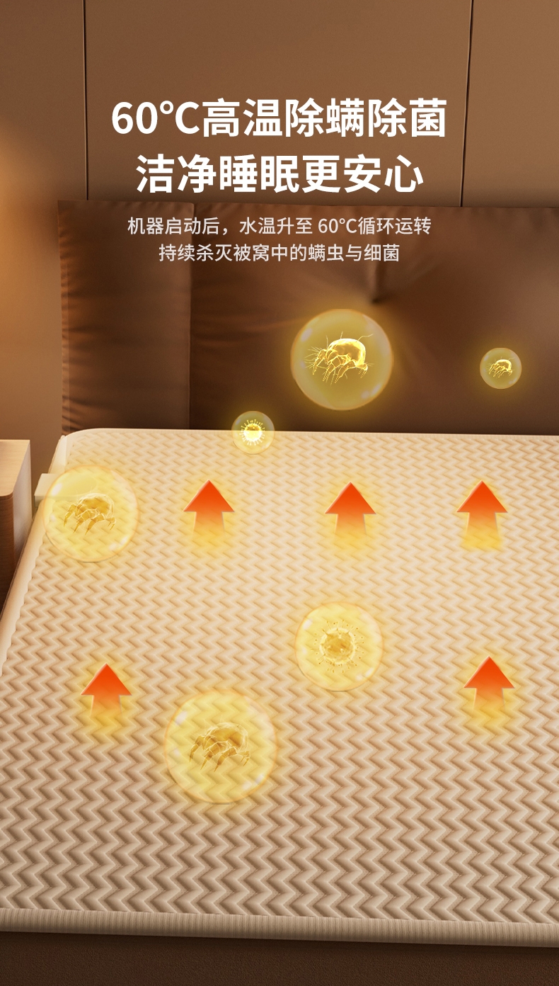 水暖速热技术 高温除螨;20-60度温度调节;语音,APP,触摸控制
