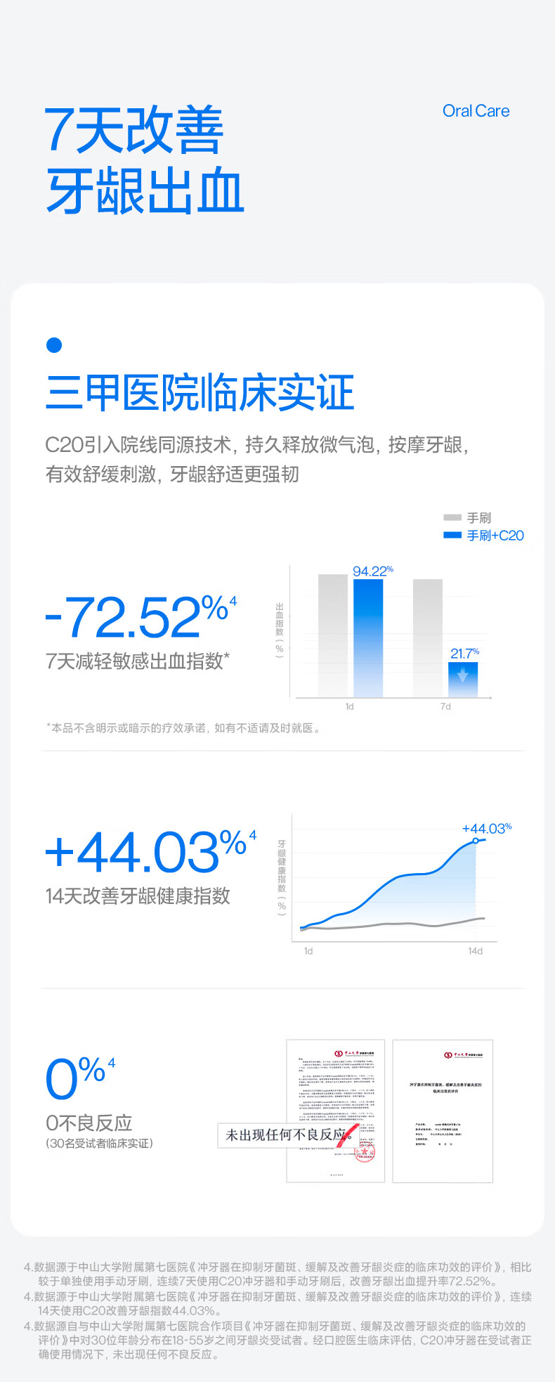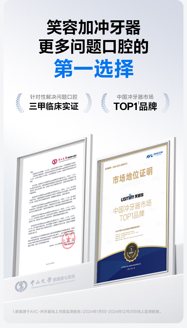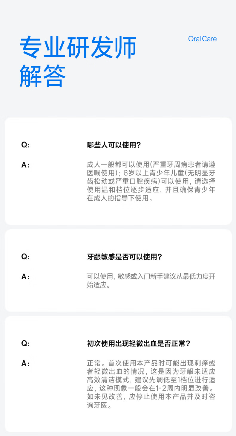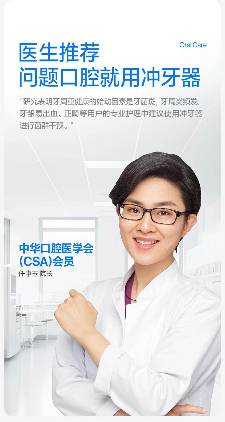 齿科超声双水流,4倍牙菌斑去除率*;可替换的磁吸大小水箱,一台顶两台;医研160°双S型喷嘴*,后槽牙一冲就净;医疗同源隔膜泵,经久耐用 9挡分龄护齿,全家适用;防霉管道抑菌99%干净卫生,充电3小时,续航30天