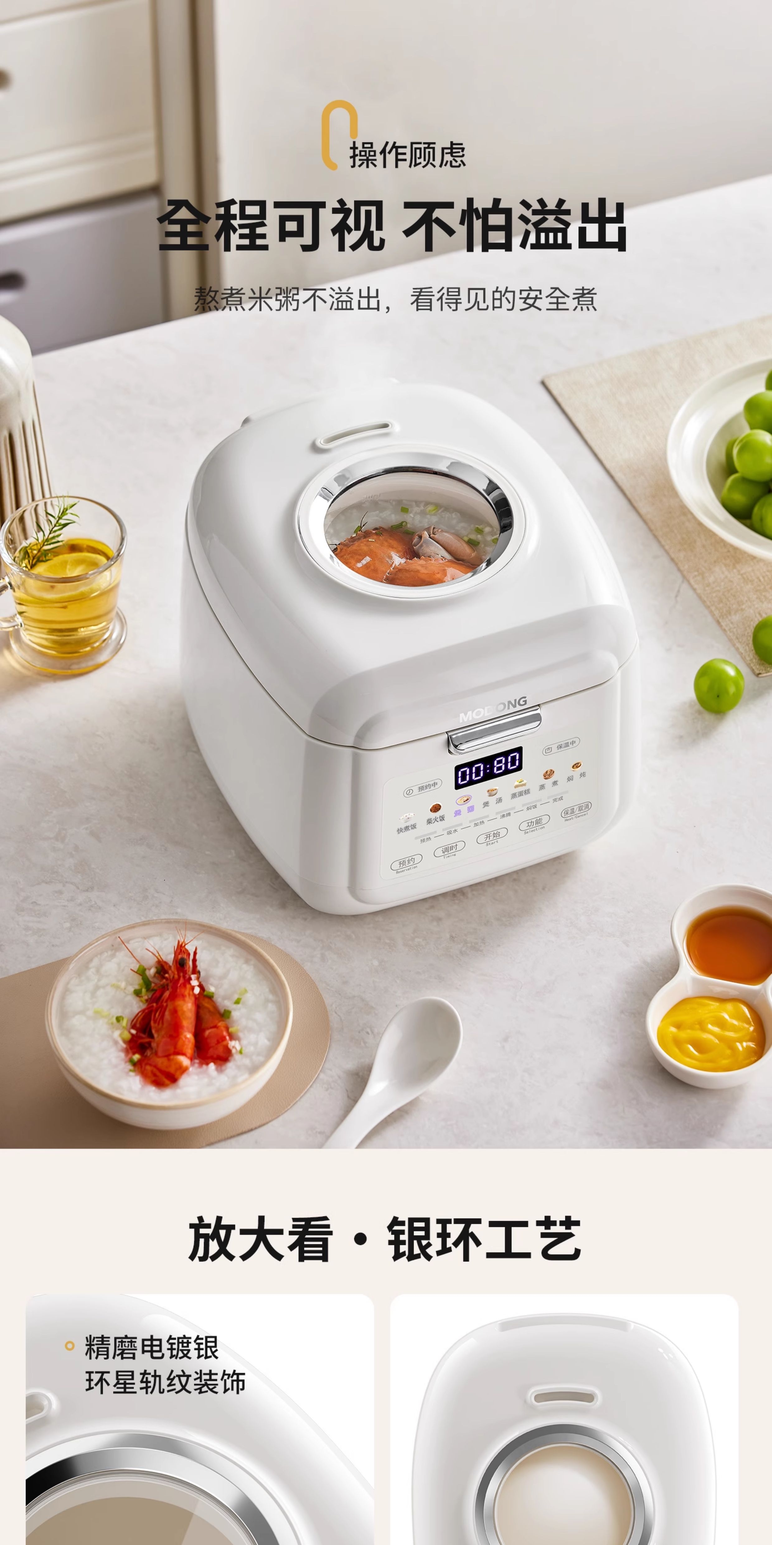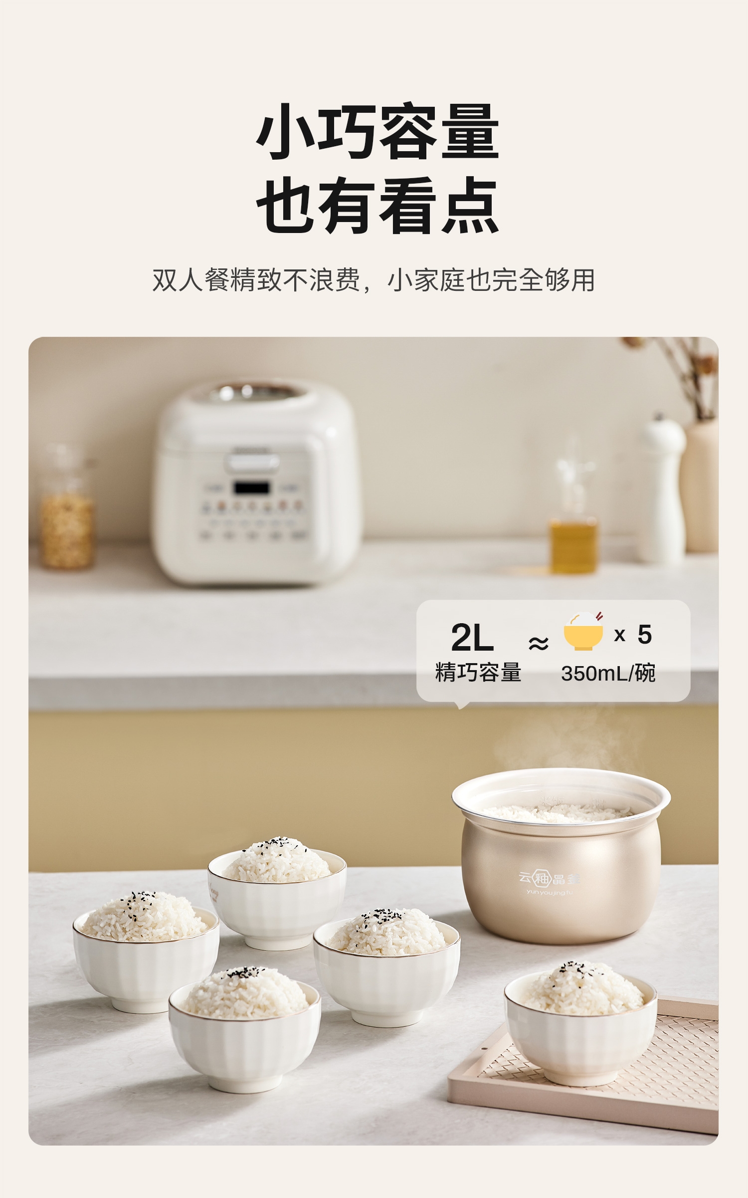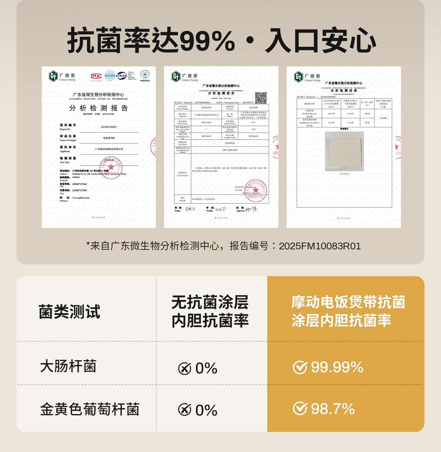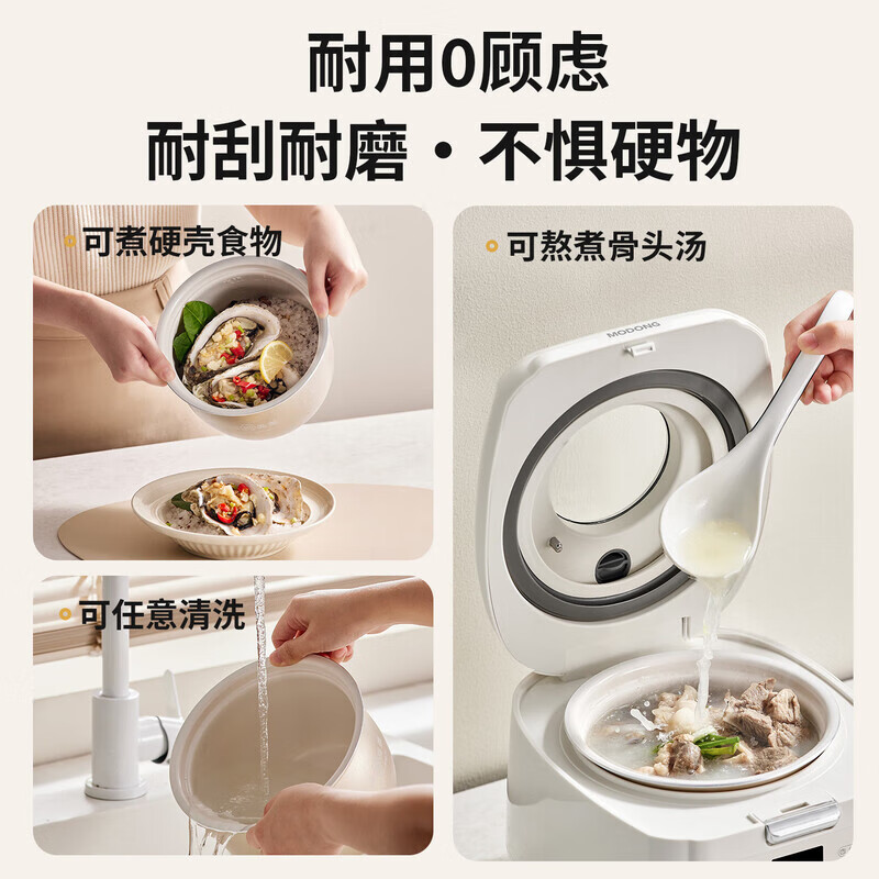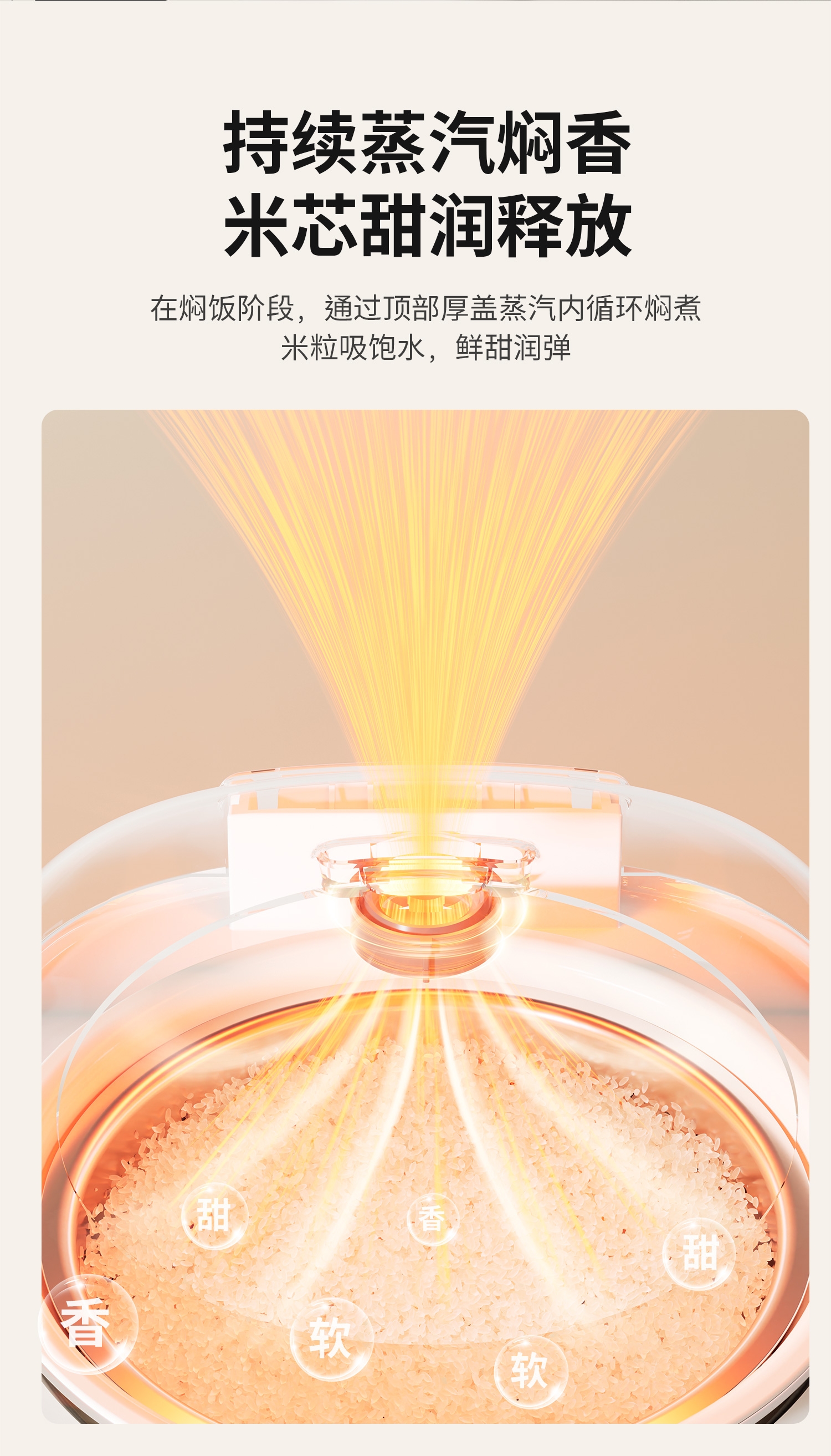 云釉护健康0负担 吃好饭 99%抗菌云釉晶釜;耐磨不粘内胆悬浮托举,铲饭不易粘;日常多次使用清洗,内胆依然光洁无明显损坏