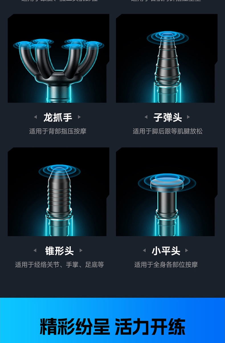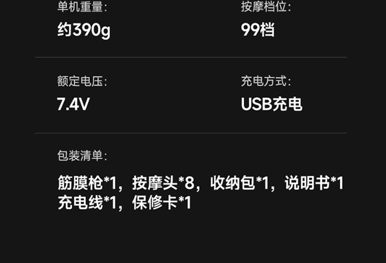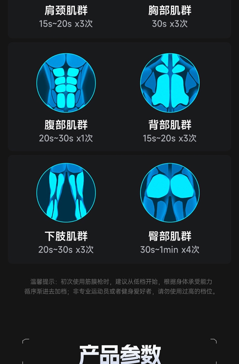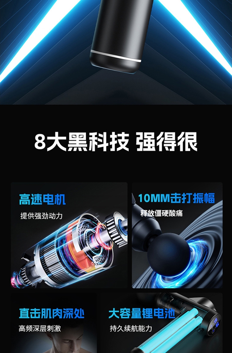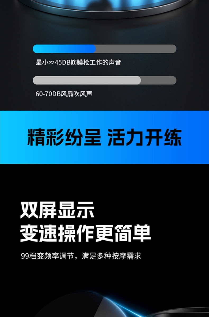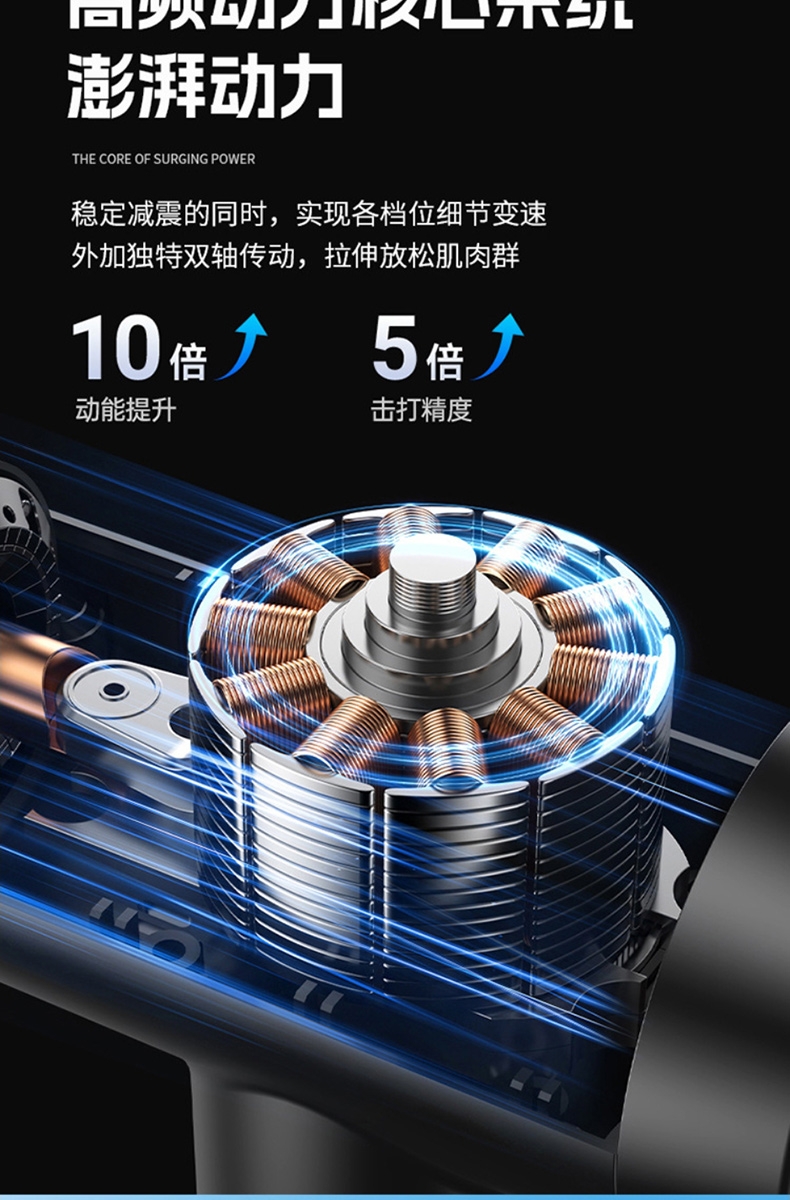 深度按摩:科学的击打深度;变速调节:双屏显示;动力系统:高速电机