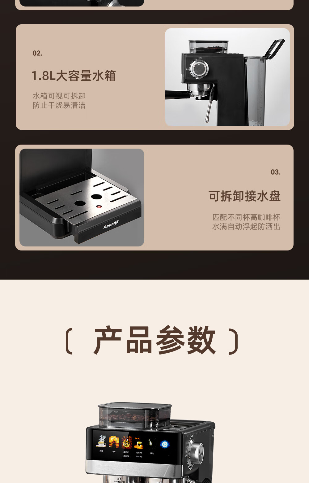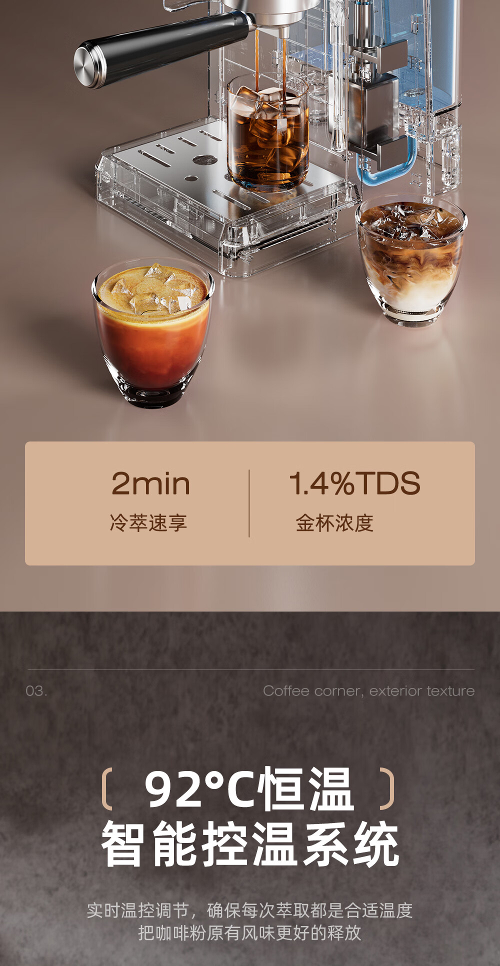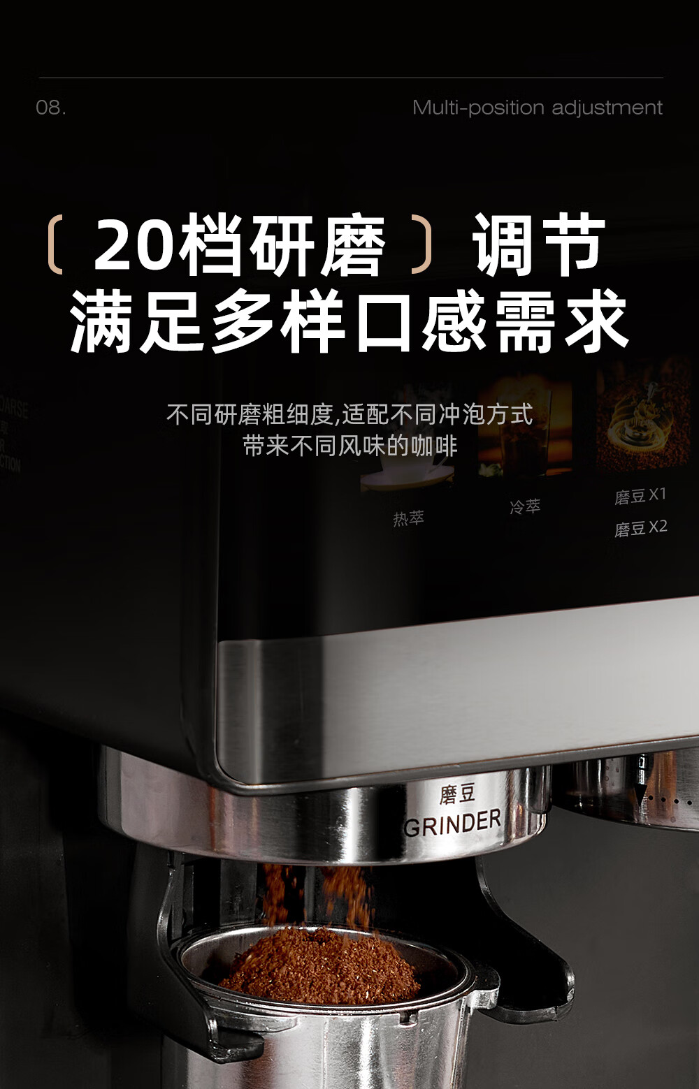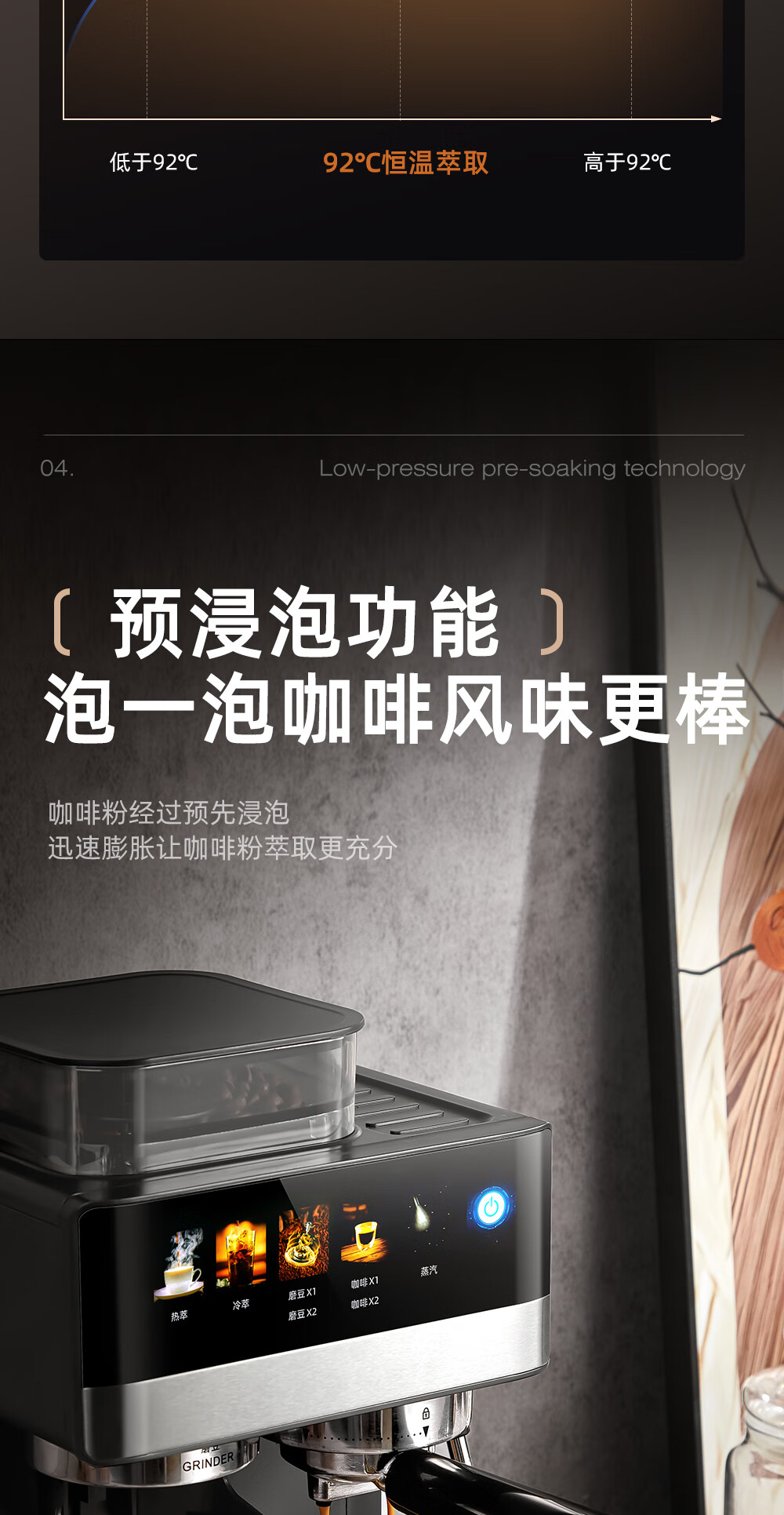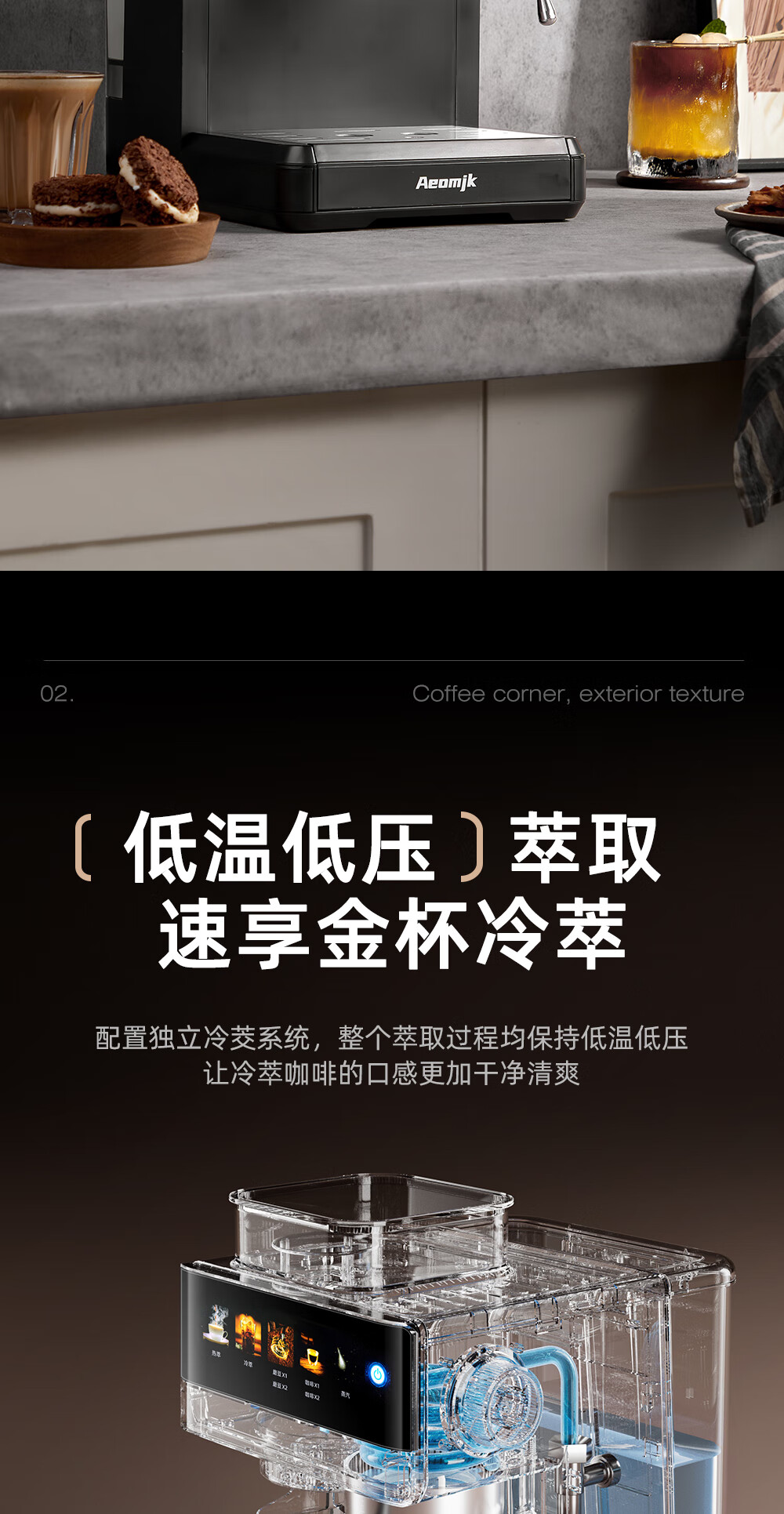 ·低温低压冷萃技术;升级研磨一体,黑科技直落粉仓系统,不藏粉;升级IMD触摸屏设计,操作简便,进程清晰·20BA