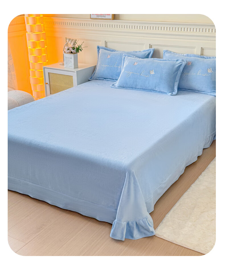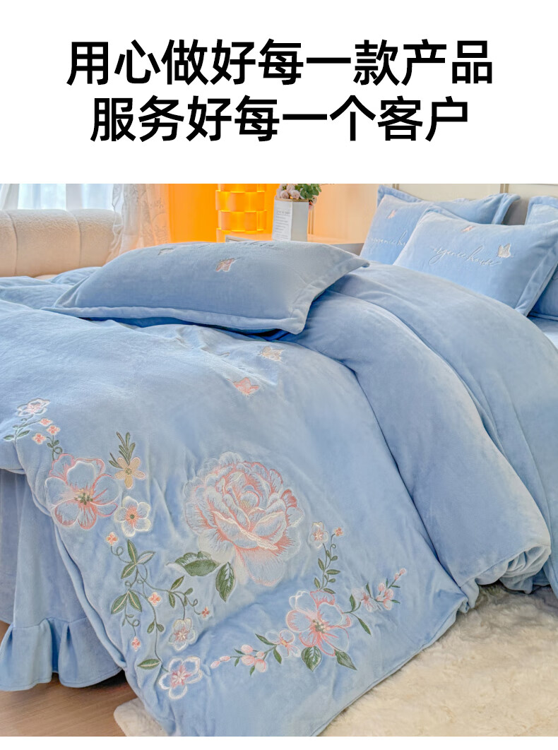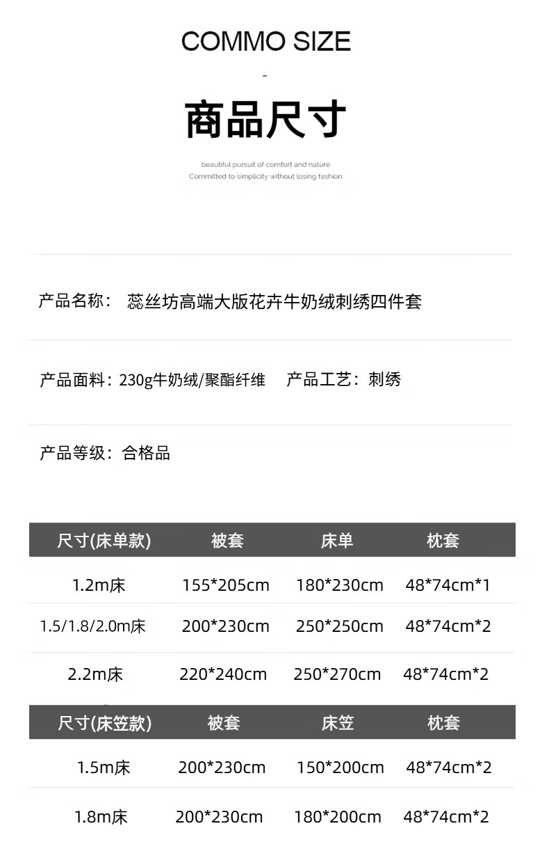 面料:230g牛奶绒工艺:刺绣+欧式圆角床单