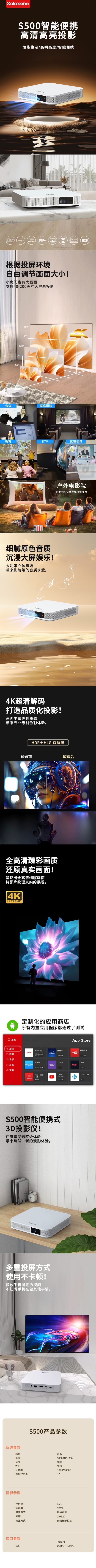 性能稳定高清动态细节;其亮度5800流明,内置WIFI;无线投屏、同屏技术,多适用于居家、办公等环境