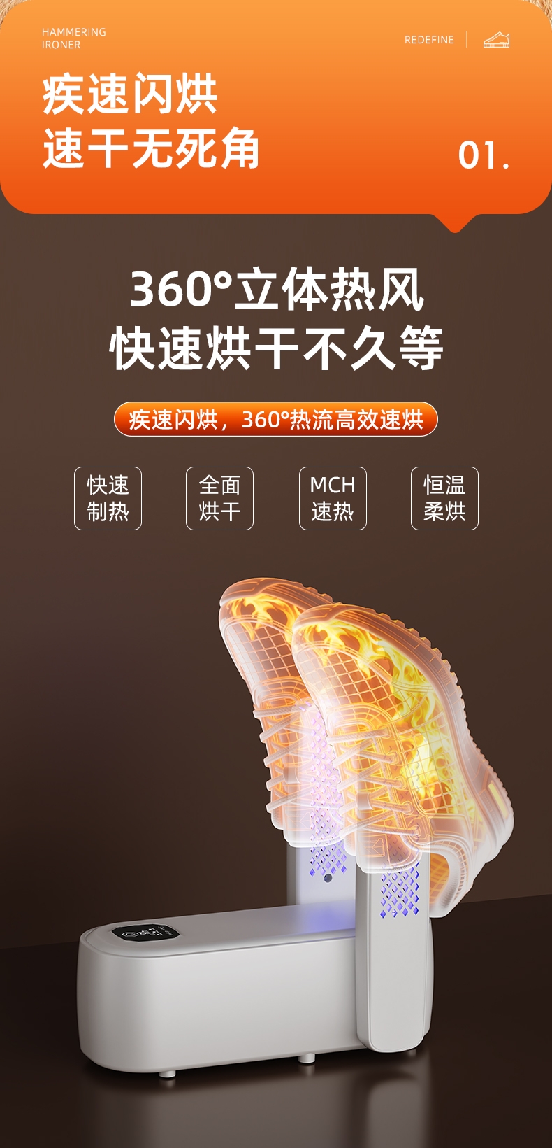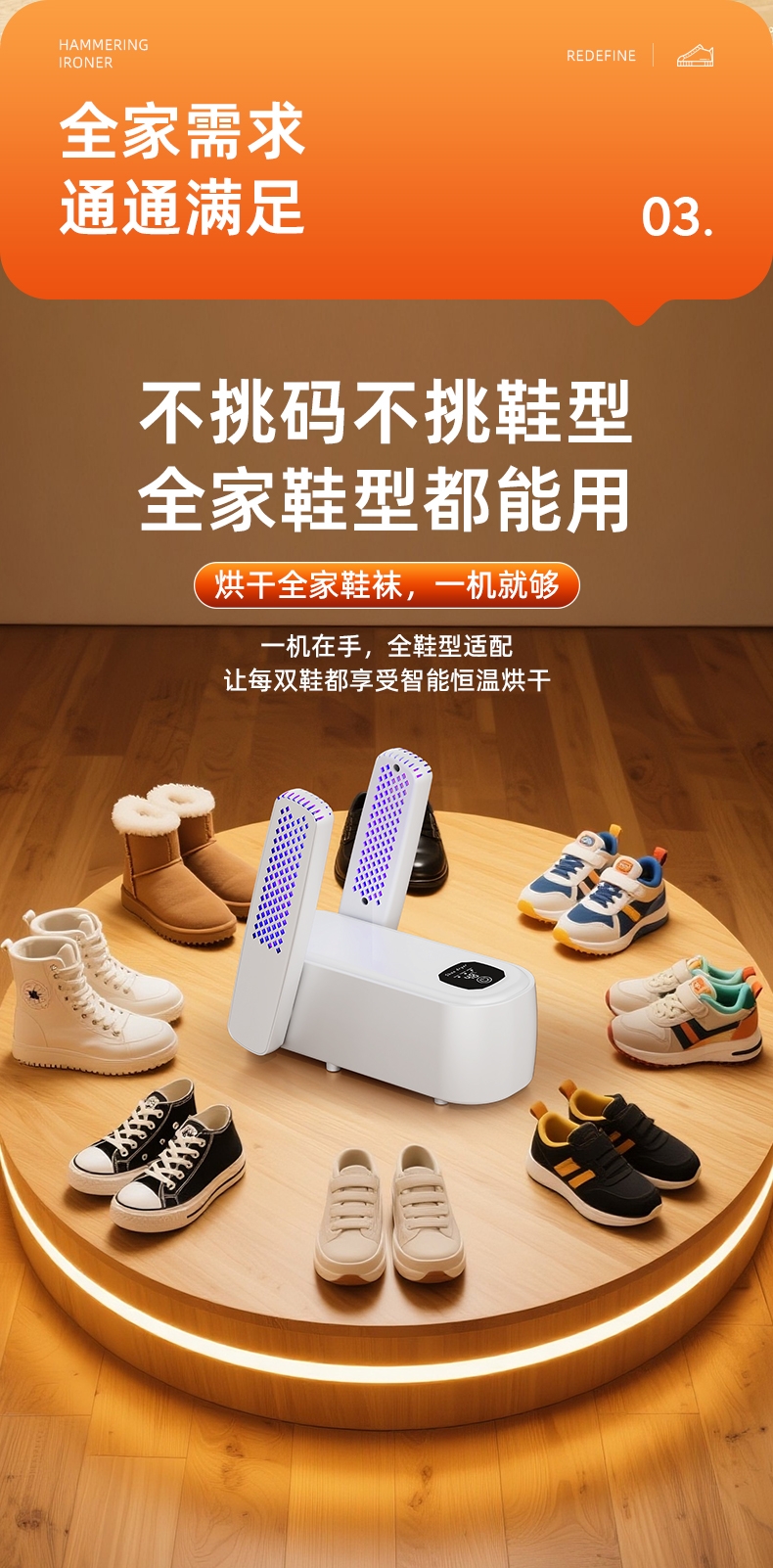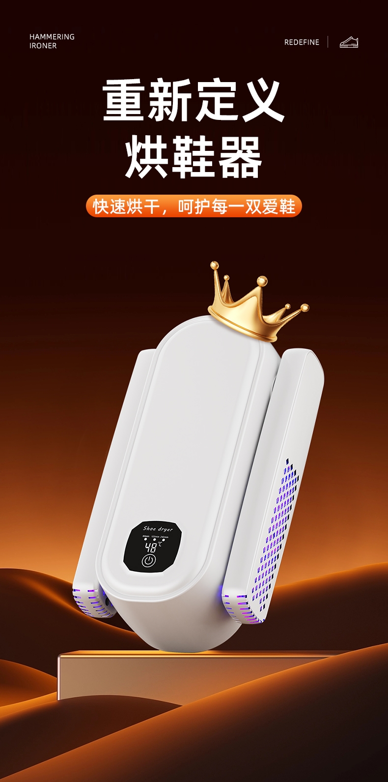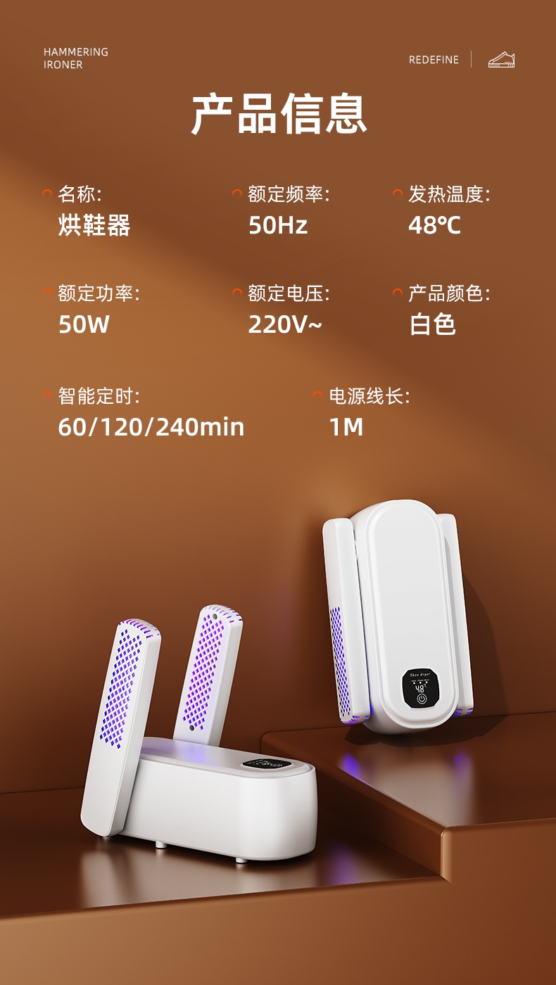 安全过热保护;折叠收纳定时开关适合各类鞋靴袜;风干蓝光杀菌不伤鞋