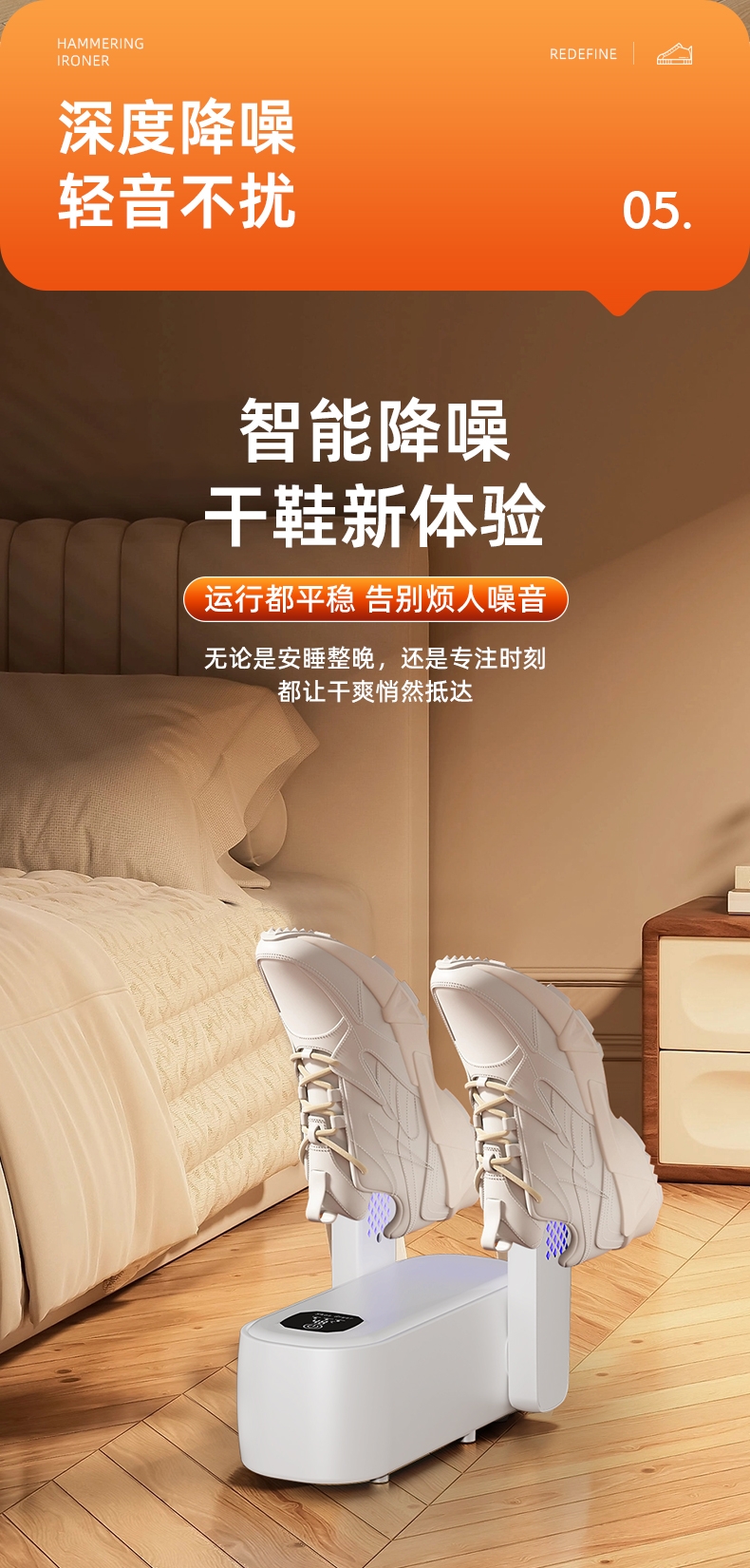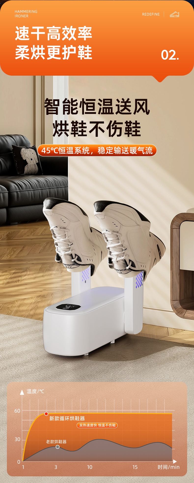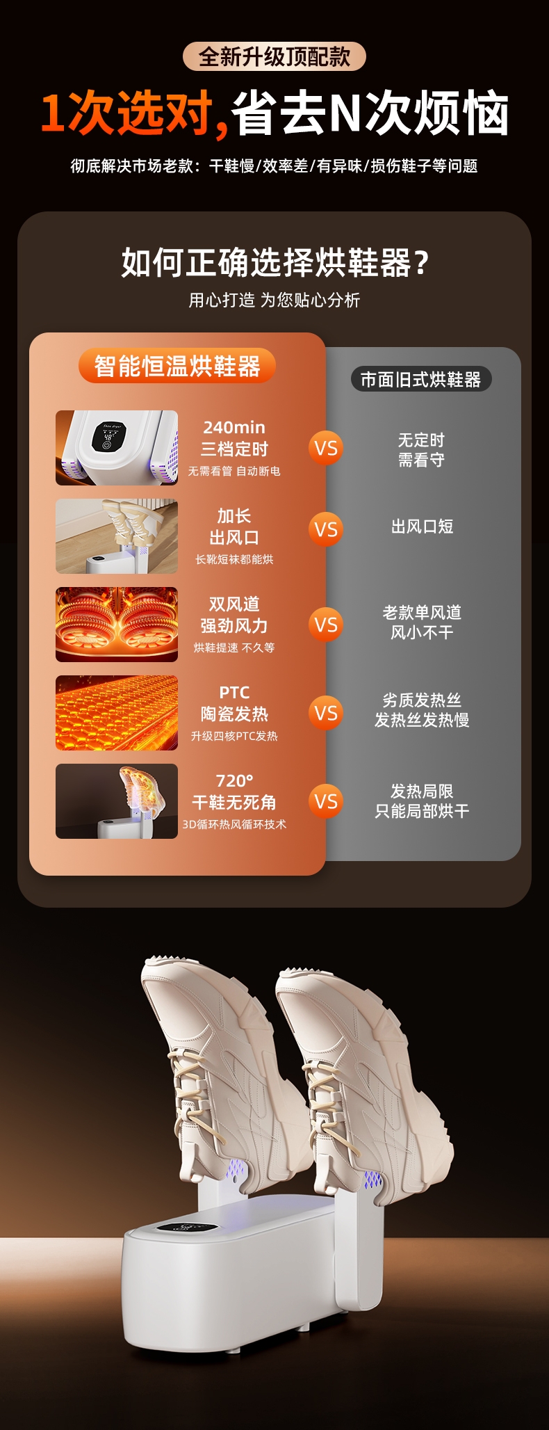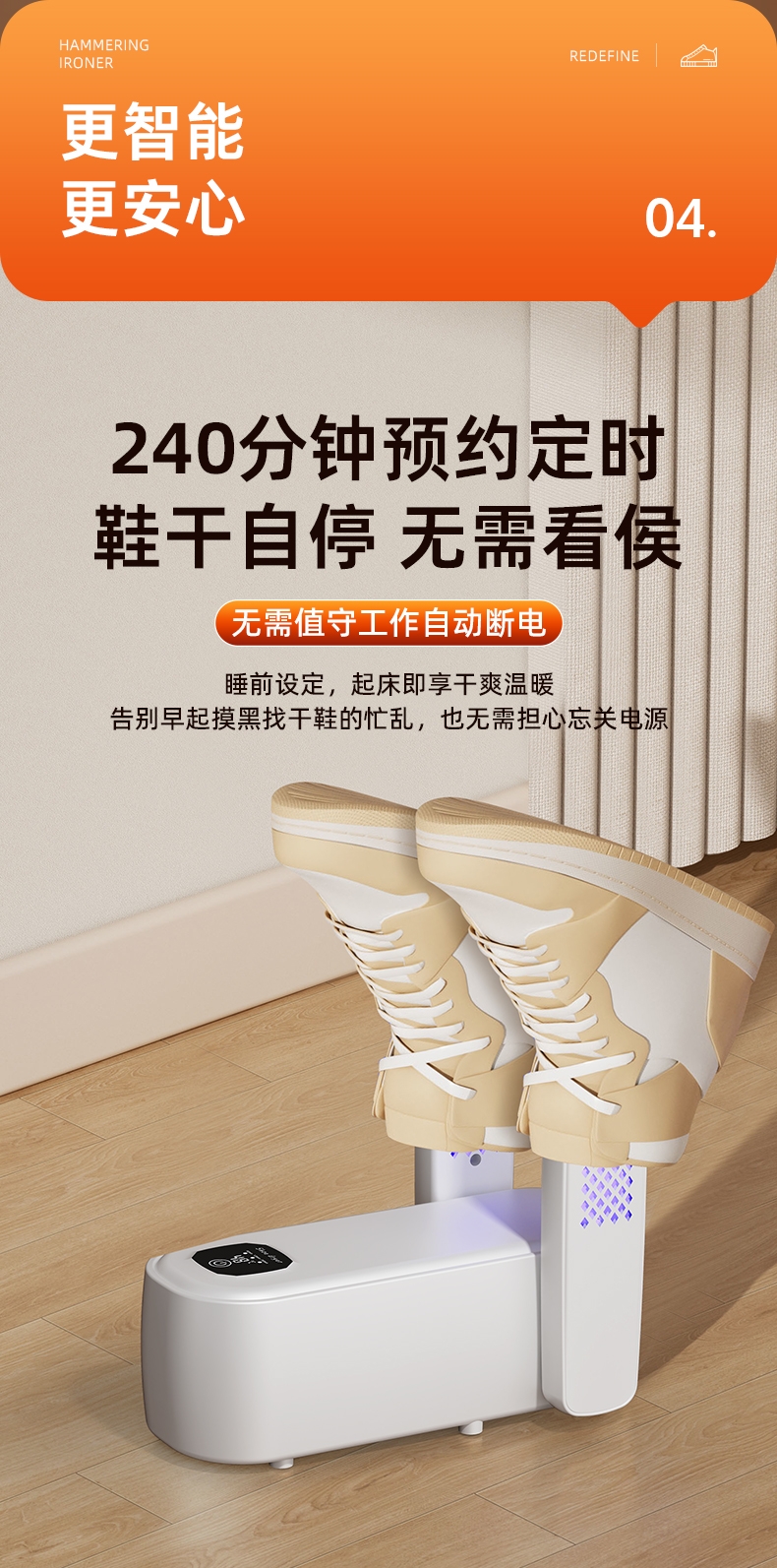 安全过热保护;折叠收纳定时开关适合各类鞋靴袜;风干蓝光杀菌不伤鞋