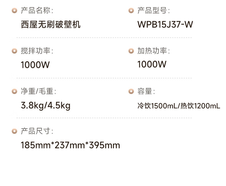 西屋 无刷破壁机变频降噪1.5LWPB15J37W