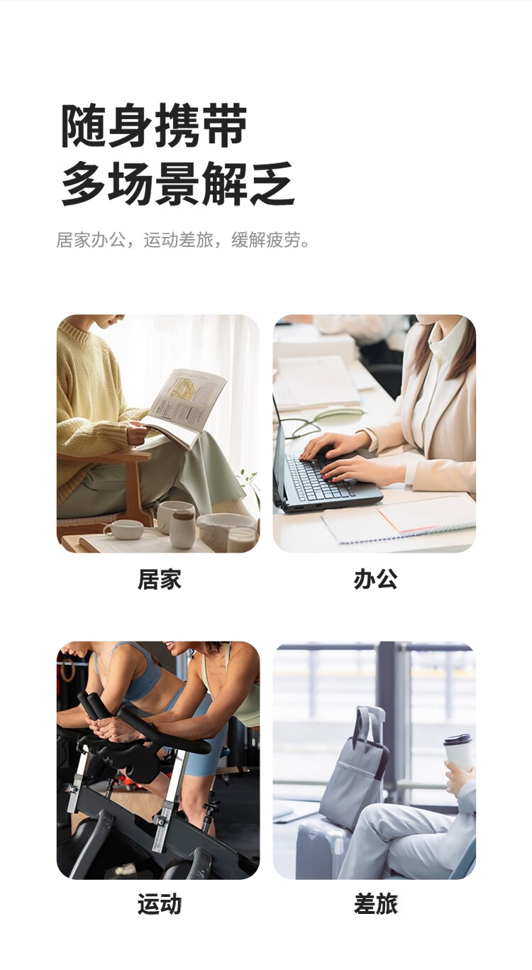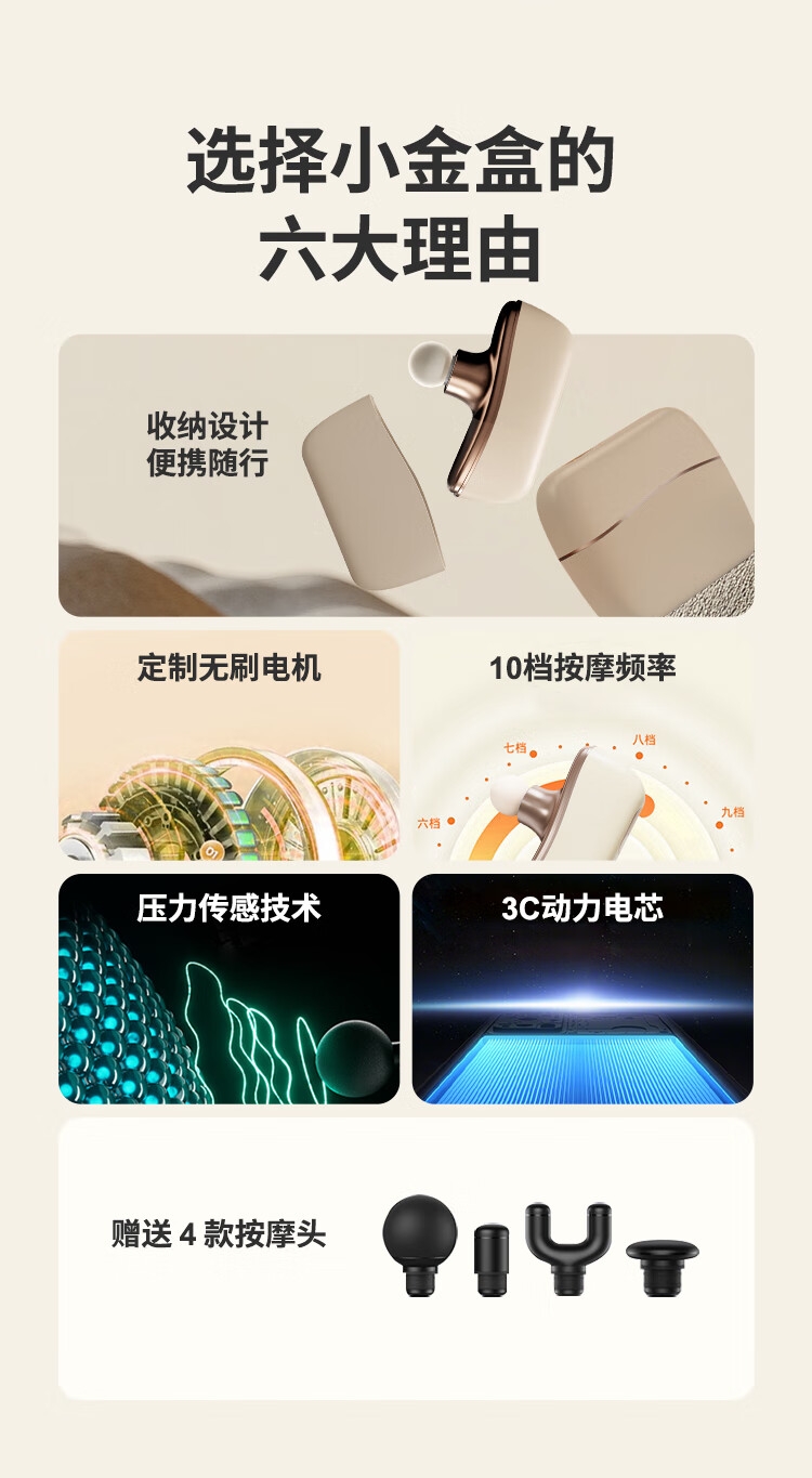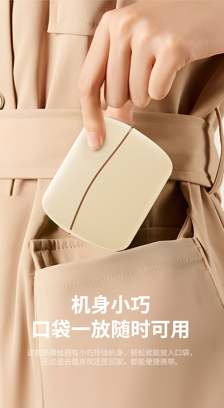 可以放进口袋的随身按摩师,运动恢复好帮手;通过10档按摩力度选择,适应不同体质的放松需求;;小巧机身与收纳盒一体化设计,易于携带 ;
