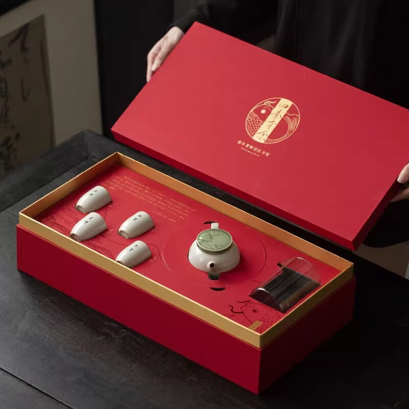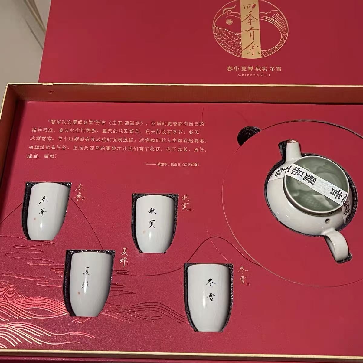 配置:1茶壶,1公道杯,1壶承,4茶杯,礼盒