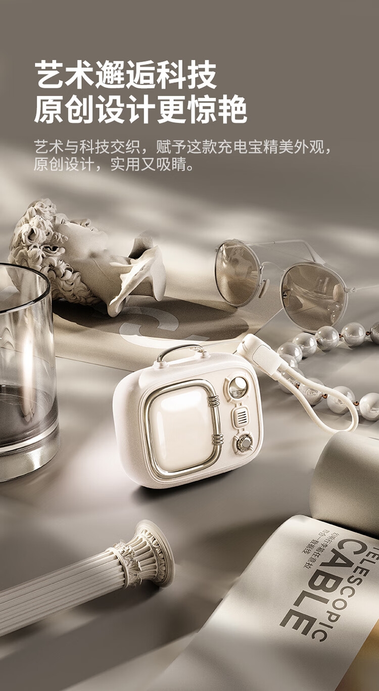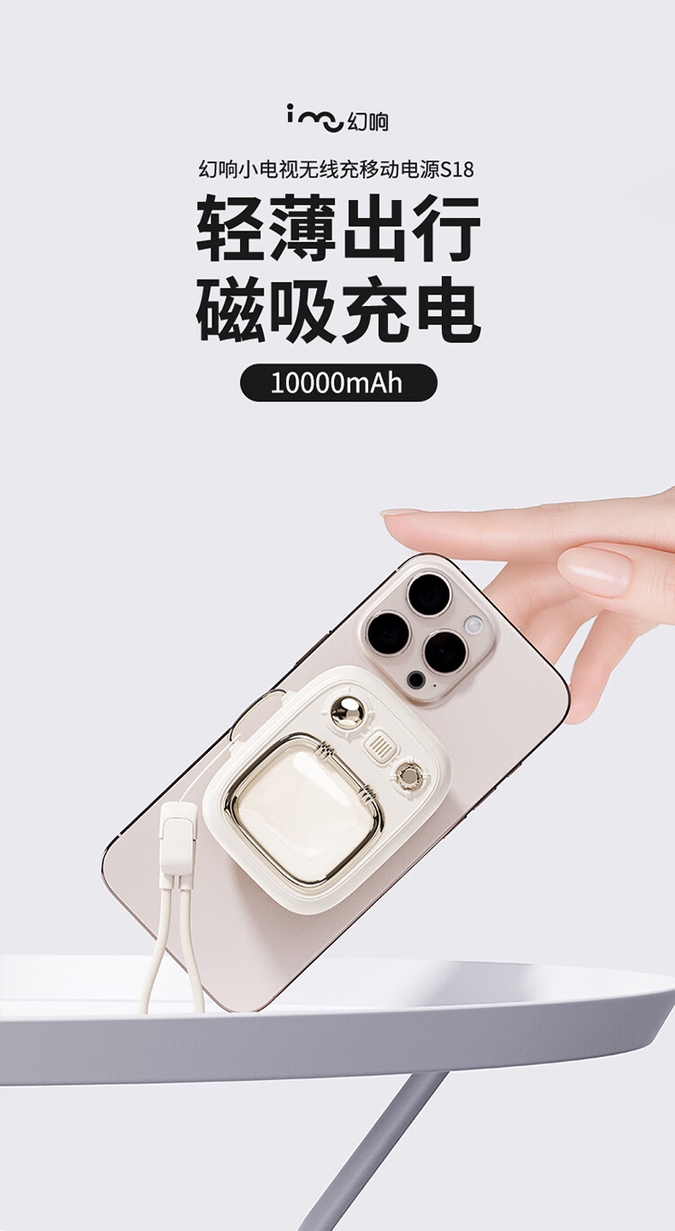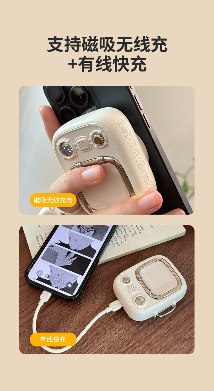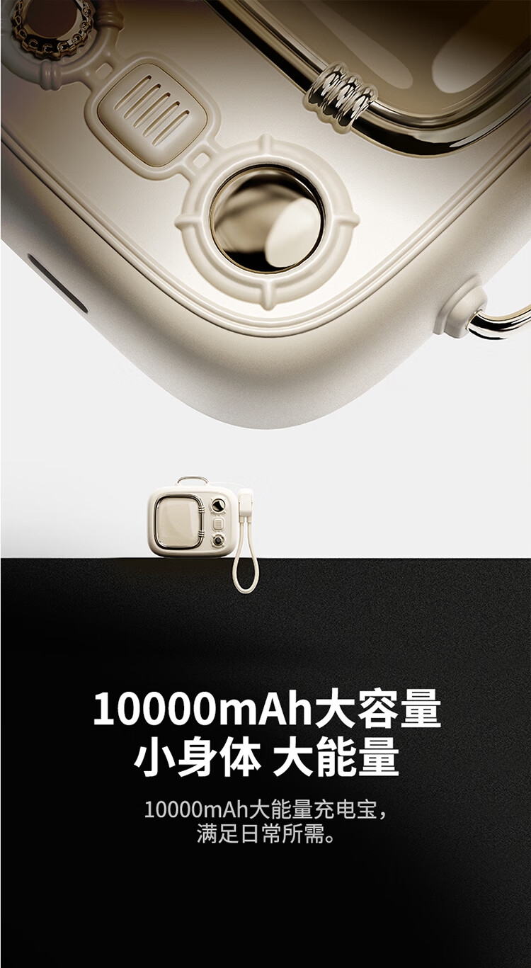 小电视磁吸充电宝,复古电视造型;;小巧机身兼顾便携性与设计感,精致细节尽显复古美学;10000mAh 容量满足日常续航需求