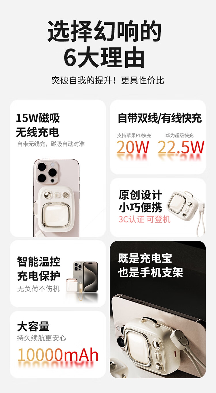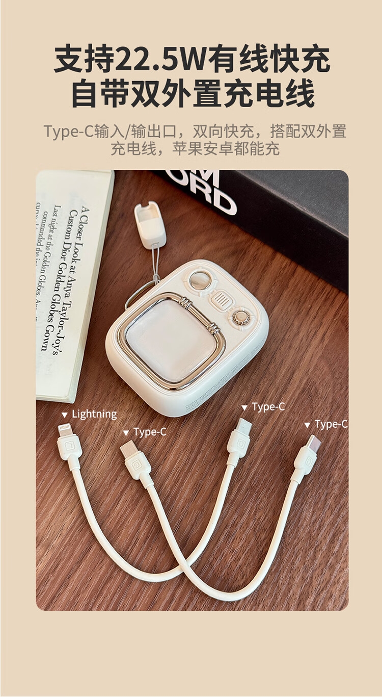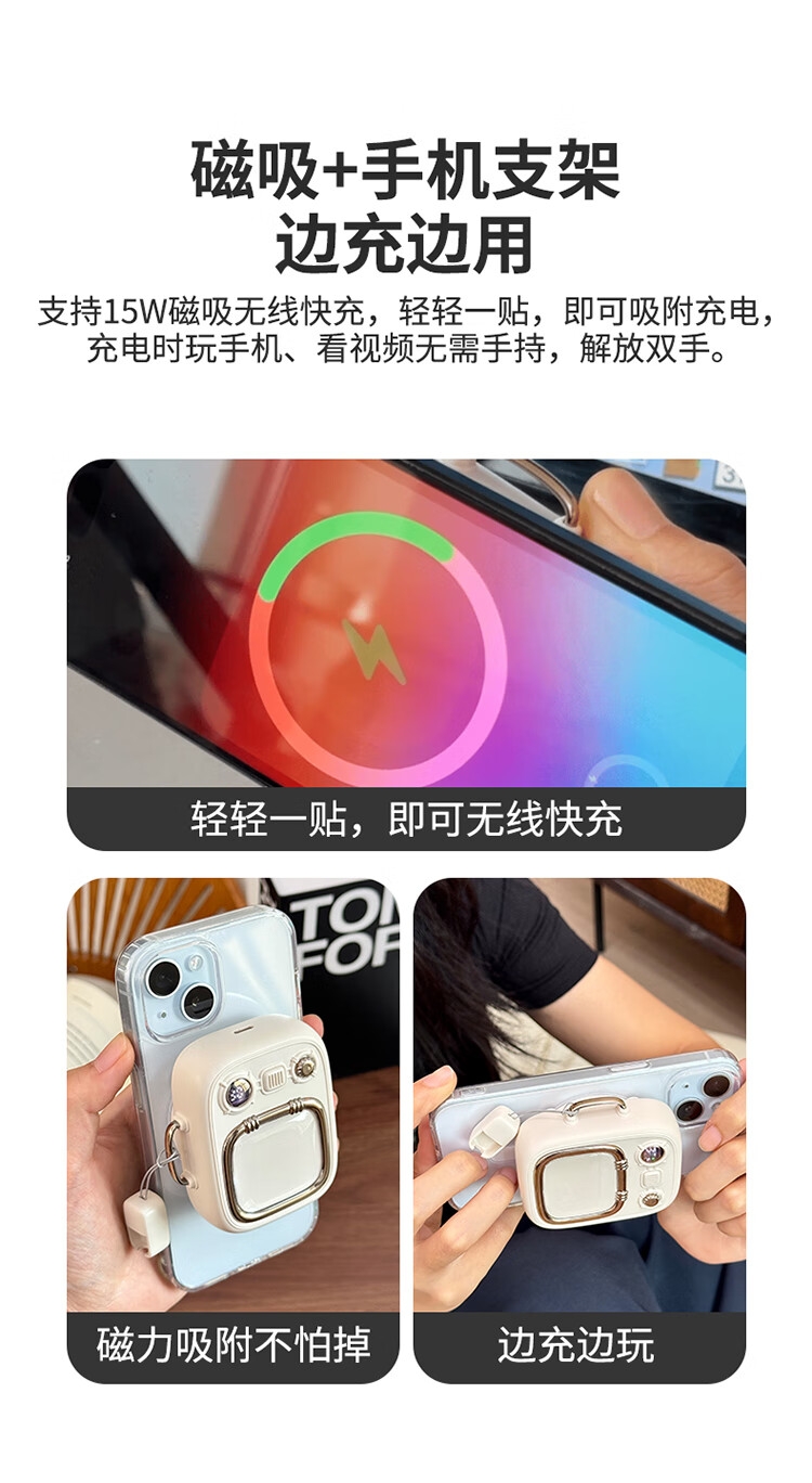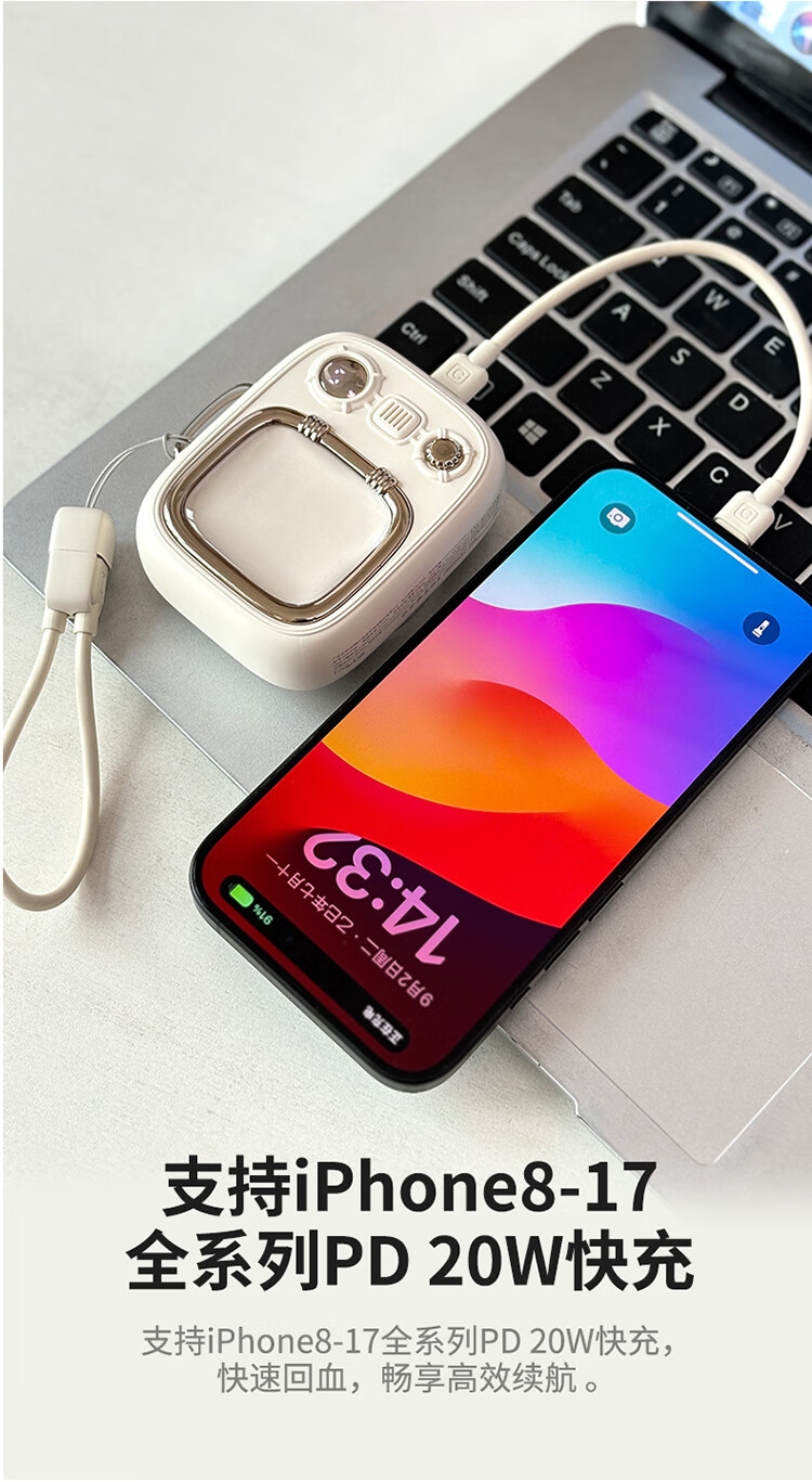 小电视磁吸充电宝,复古电视造型;;小巧机身兼顾便携性与设计感,精致细节尽显复古美学;10000mAh 容量满足日常续航需求