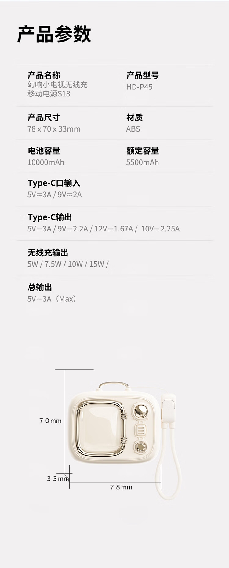 幻响 小电视无线充移动电源HD-P45