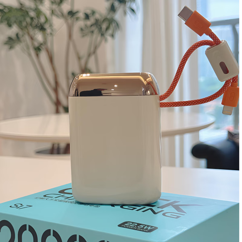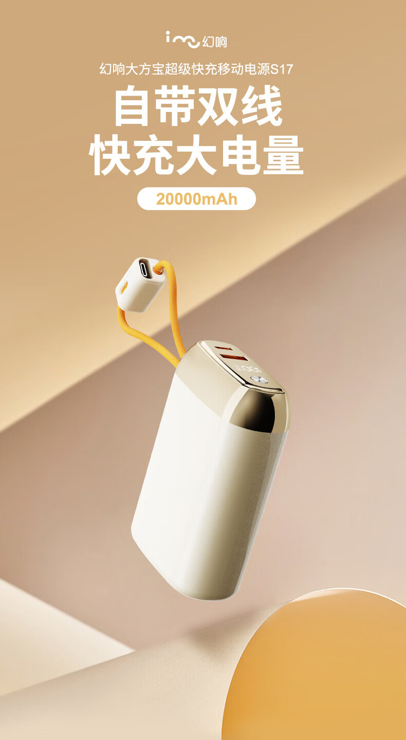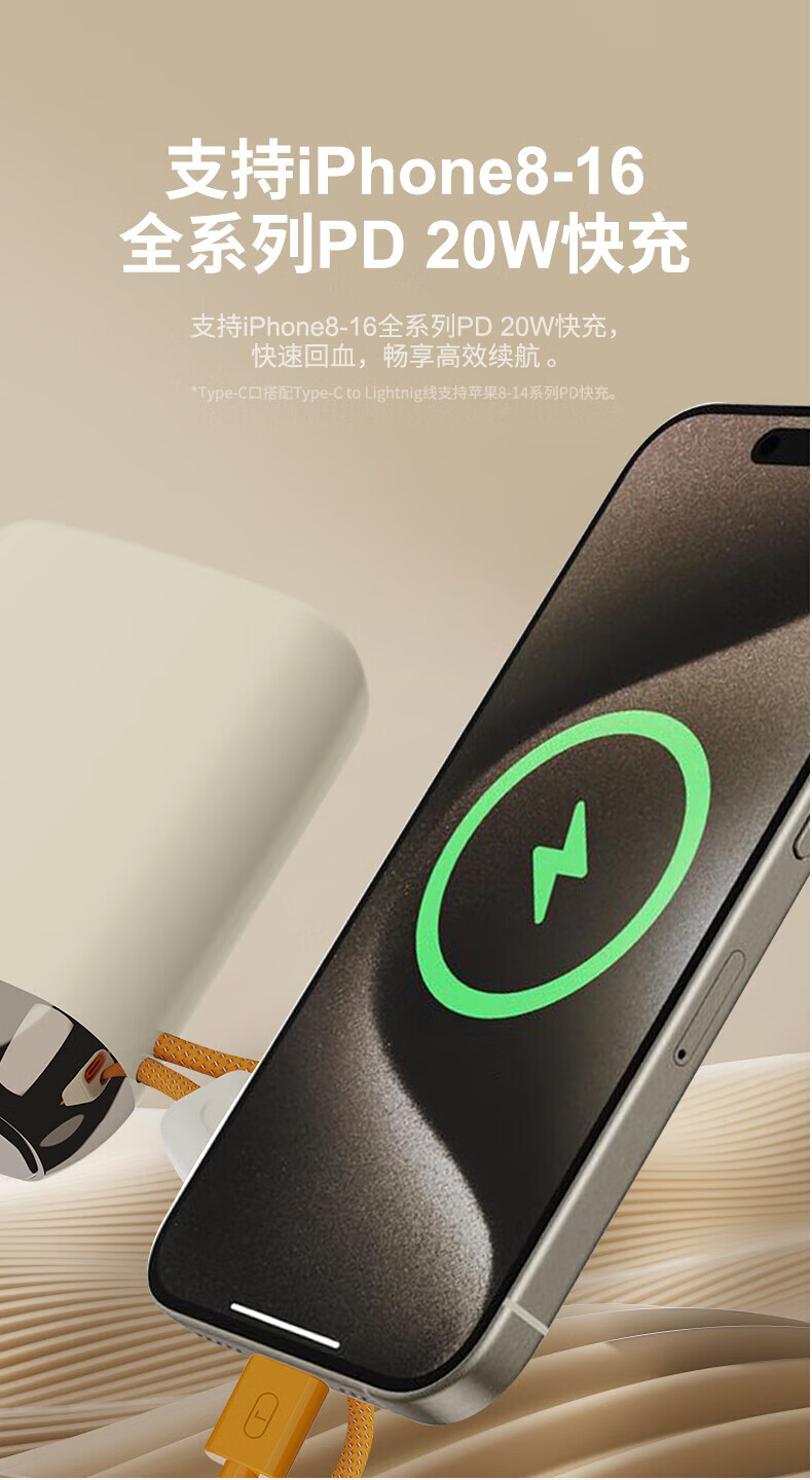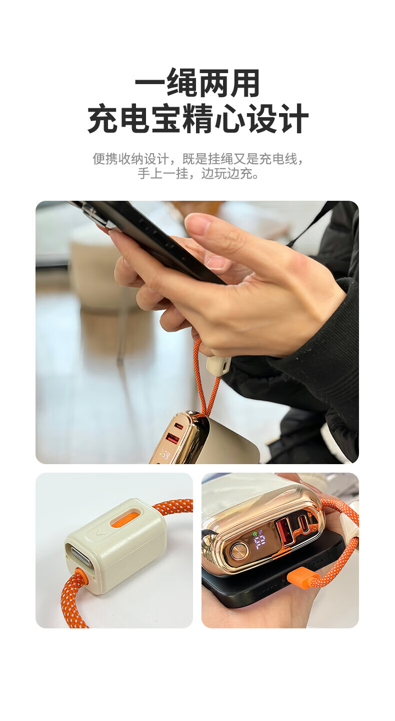 电镀亮金色,轻奢时尚;20000mAh大容量,想走就走;颜值与实力并存!轻薄机身,高密度电池更小巧