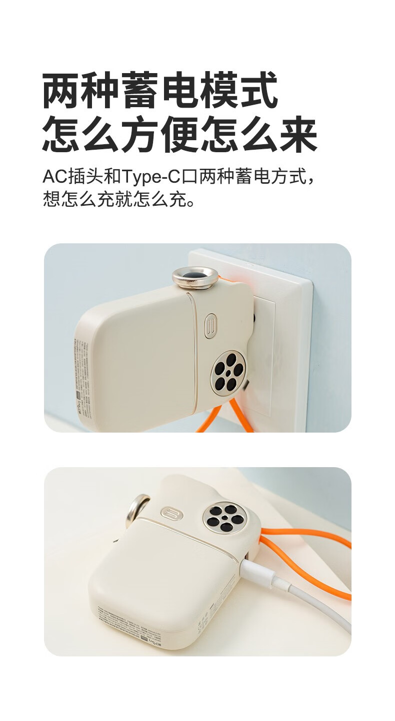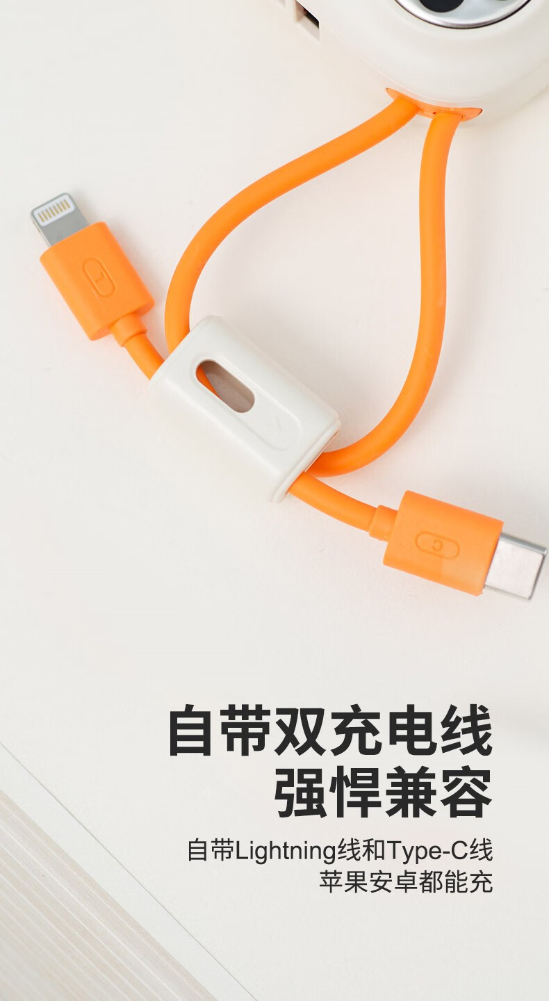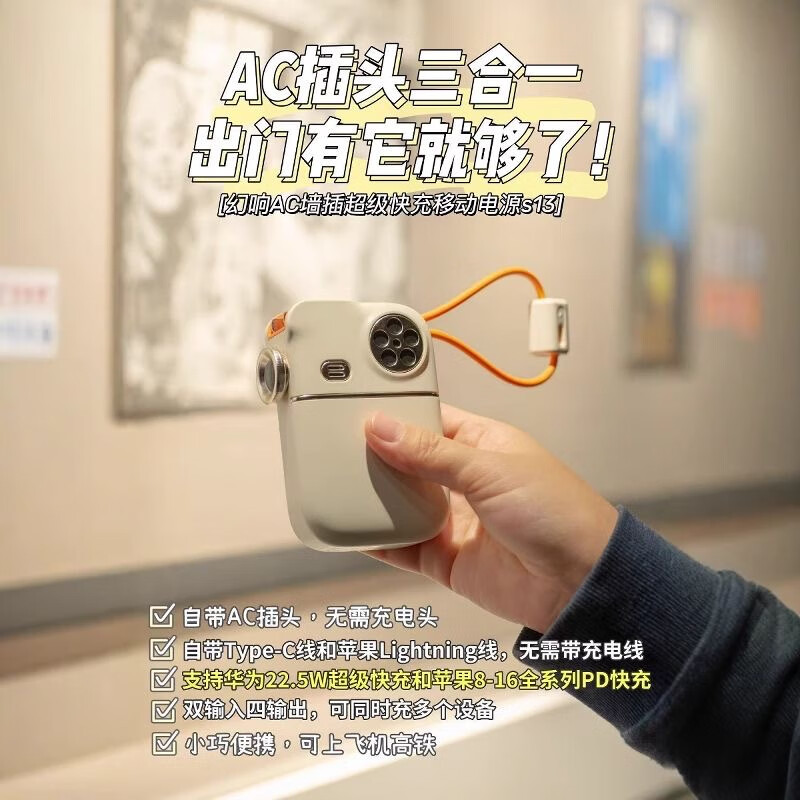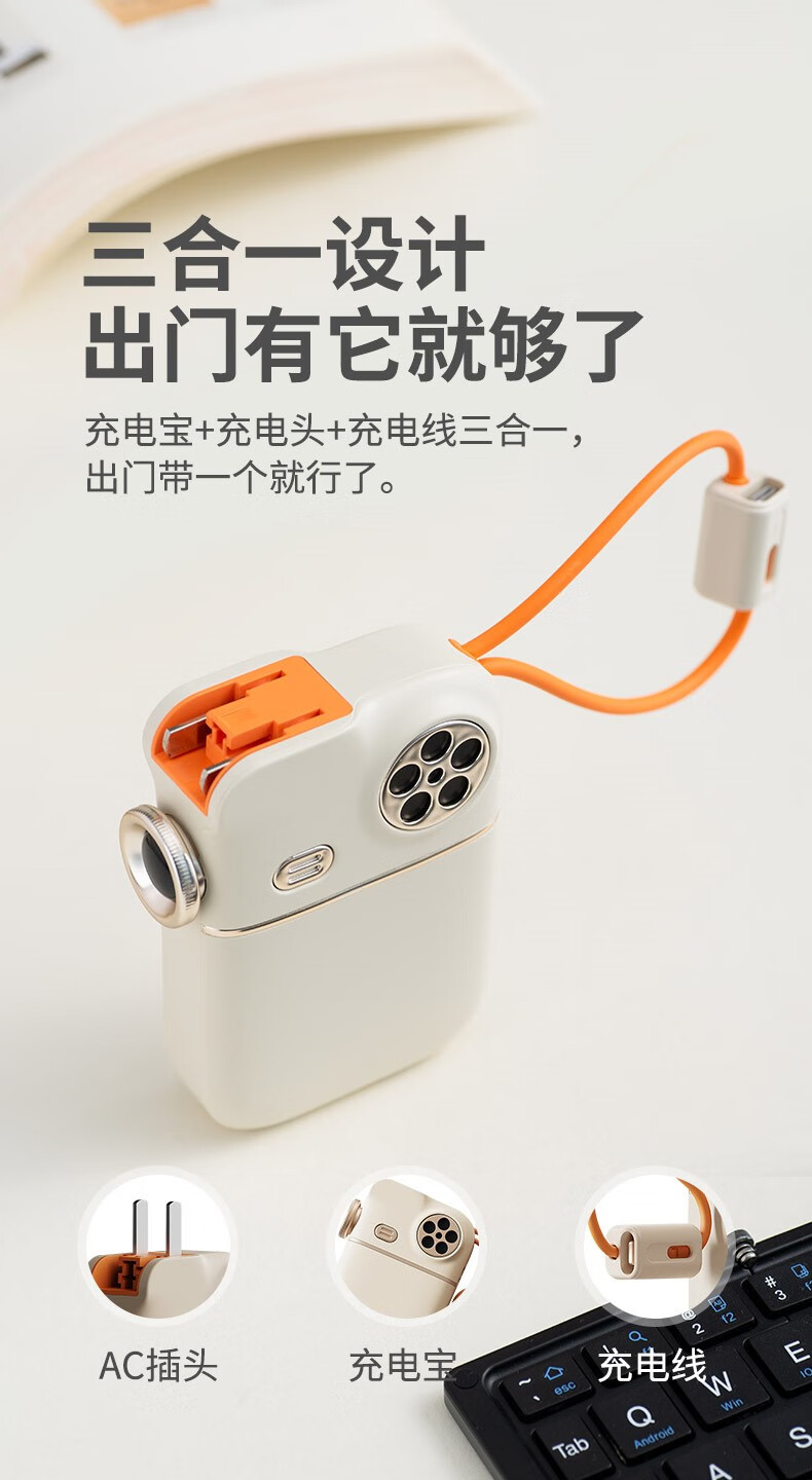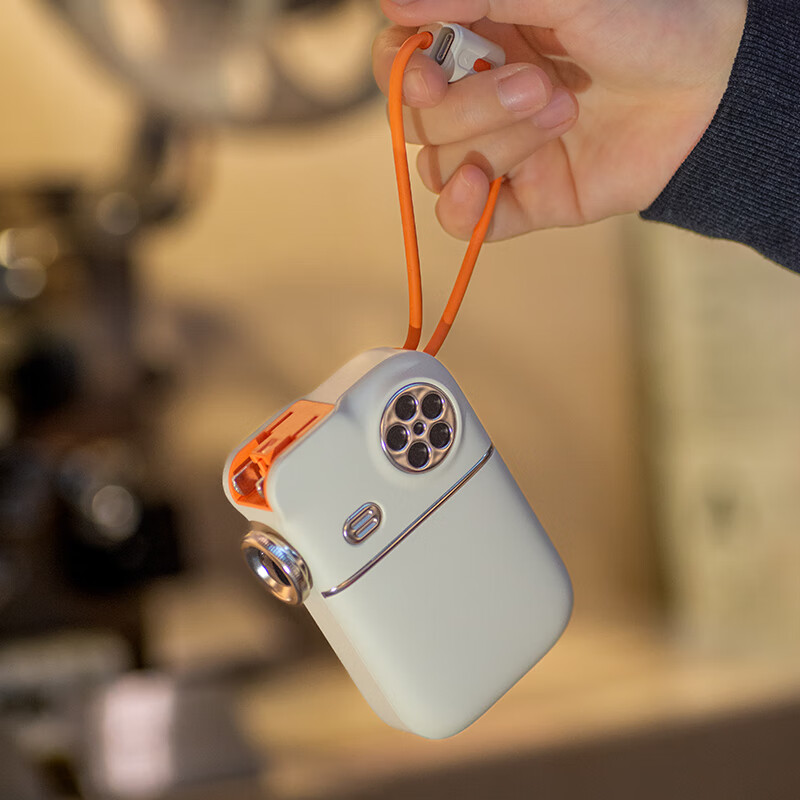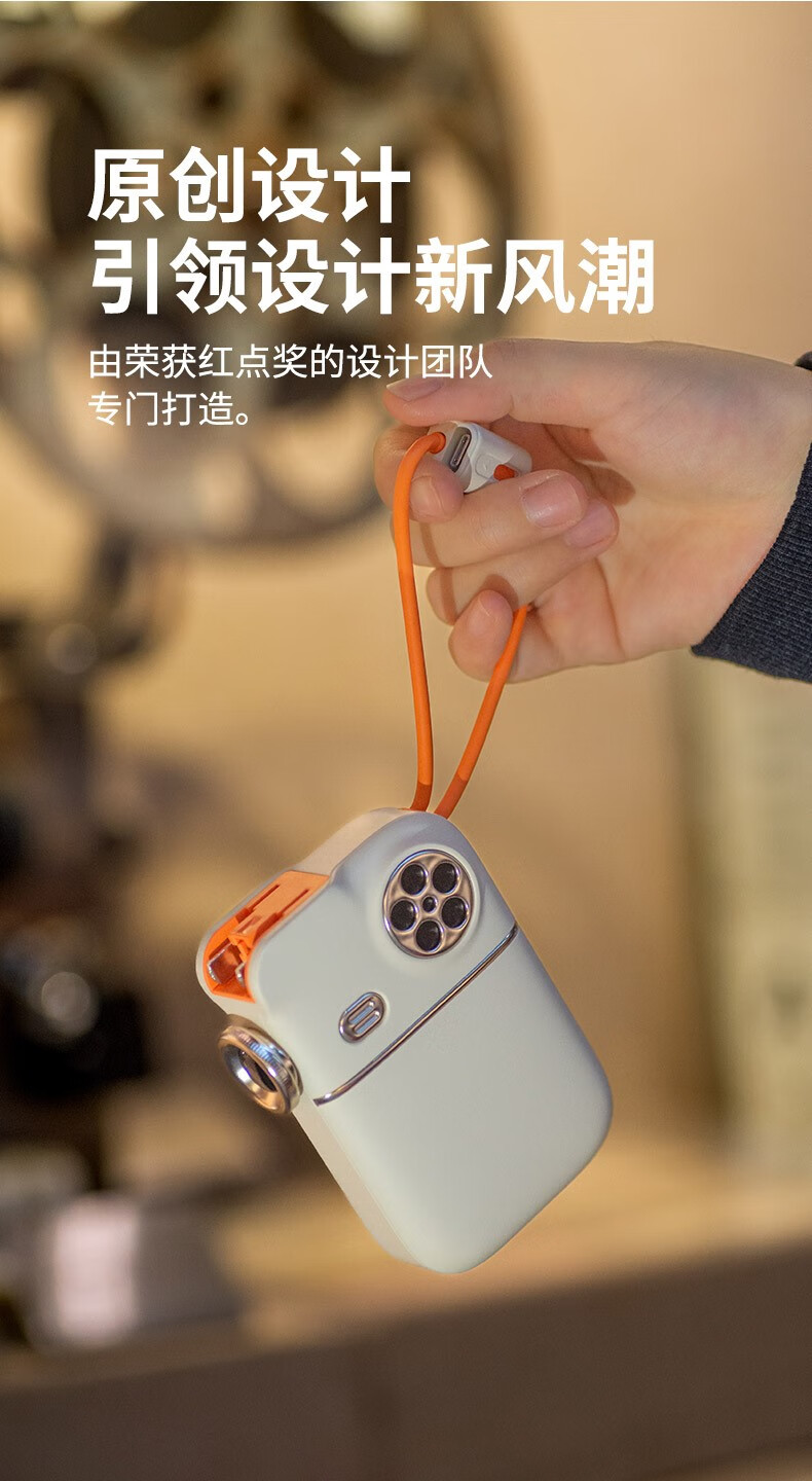 经典放映机造型,专利私模打造,已通过3C认证;身材小巧,拥有10000mAh大容量;其精巧机身融合了充电器与移动电源的功能