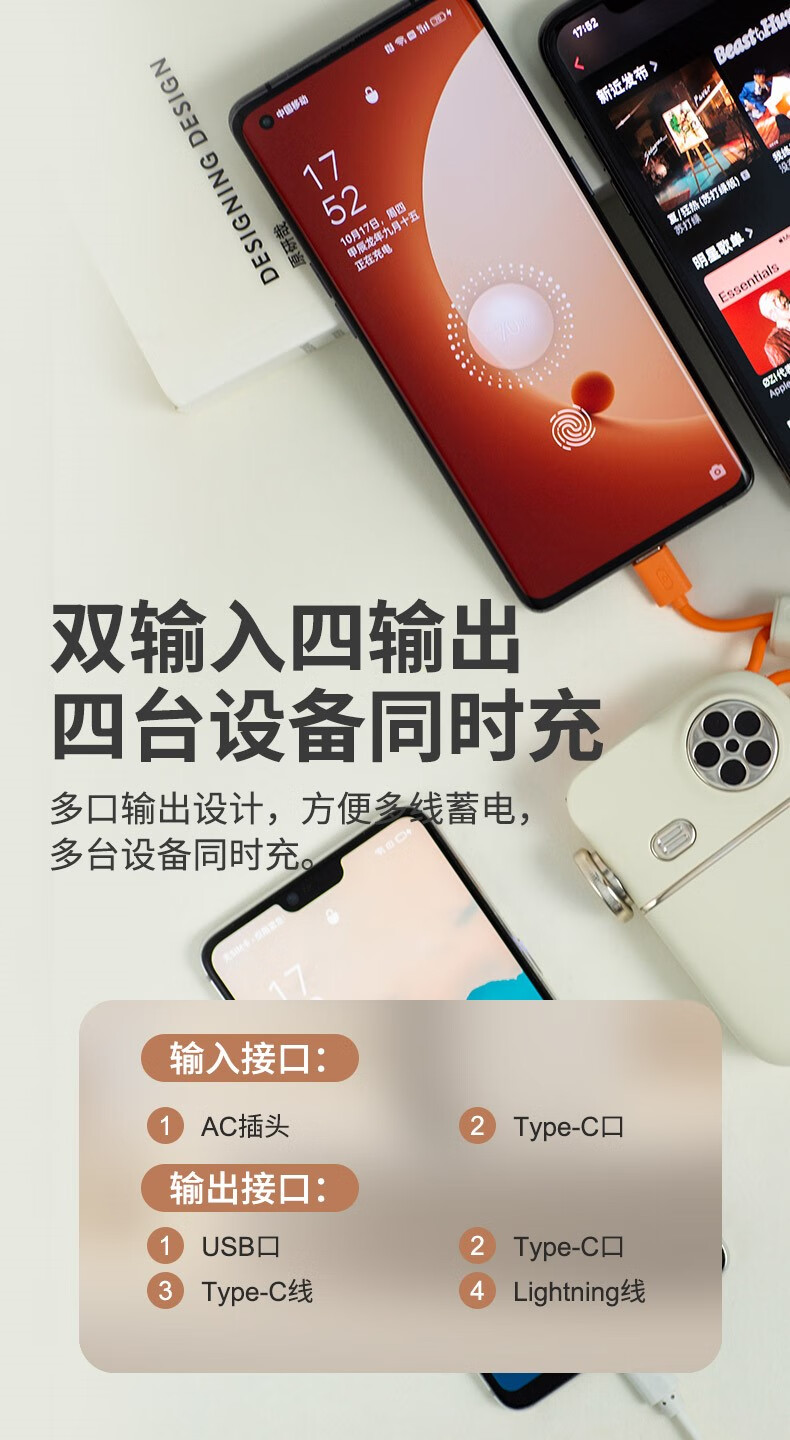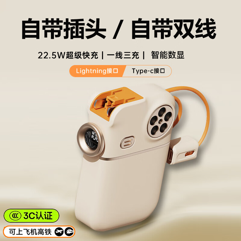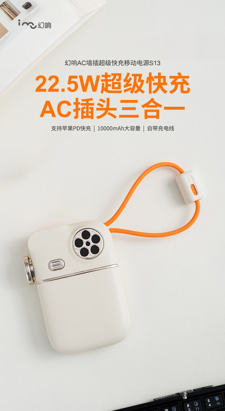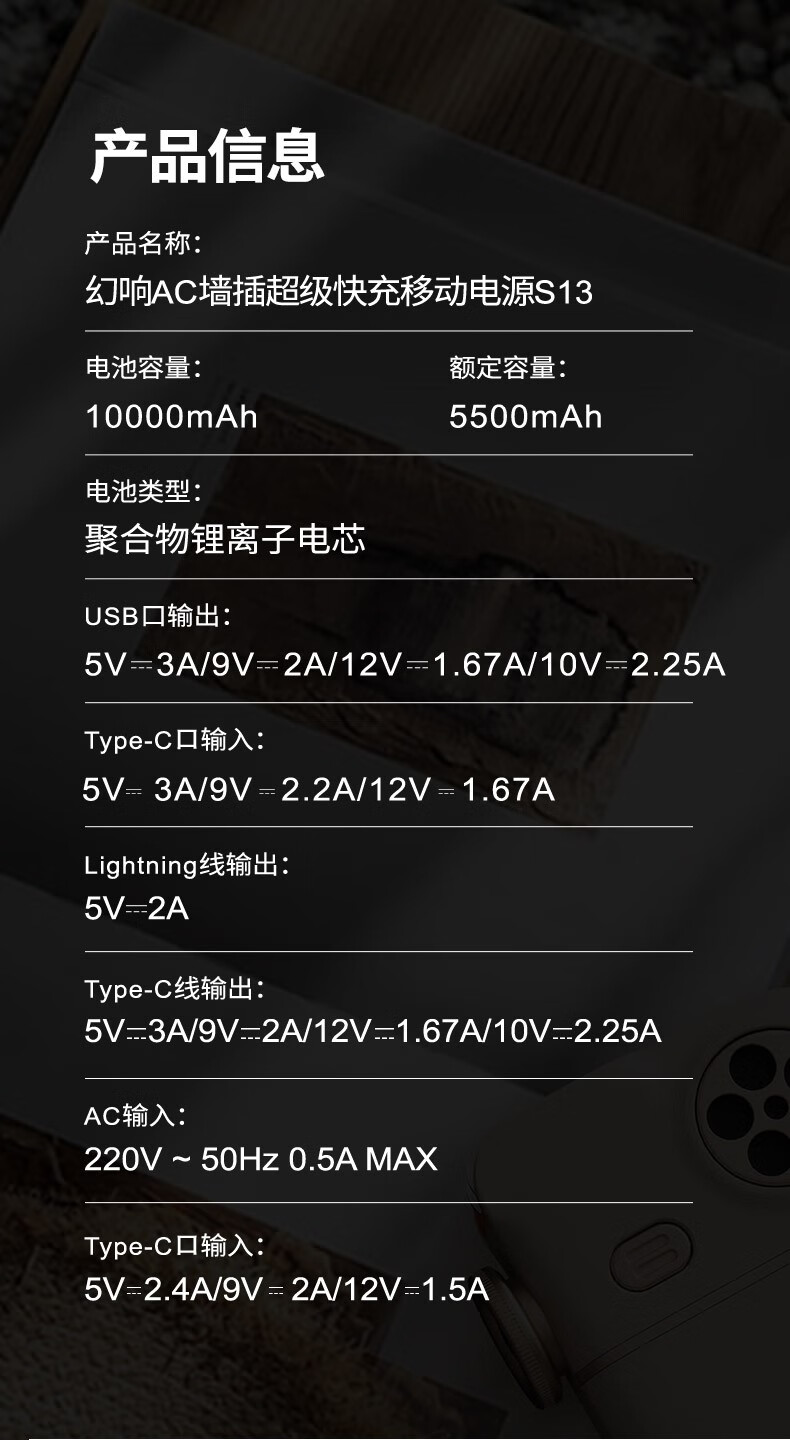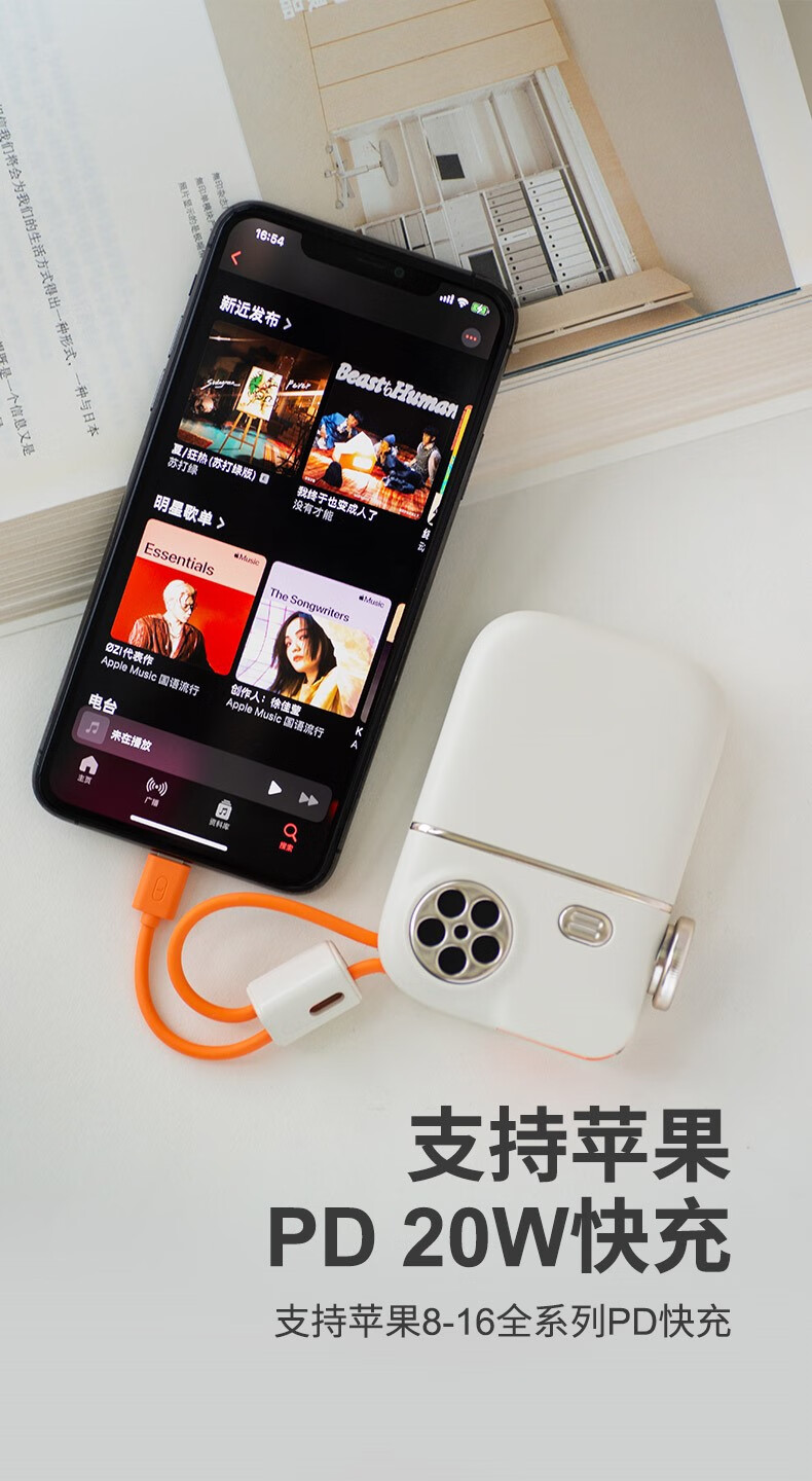 经典放映机造型,专利私模打造,已通过3C认证;身材小巧,拥有10000mAh大容量;其精巧机身融合了充电器与移动电源的功能