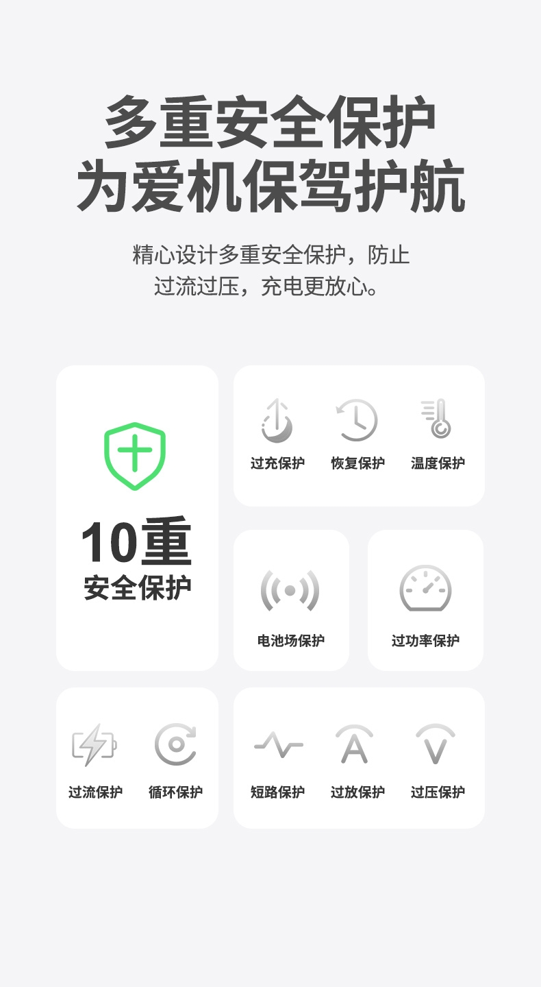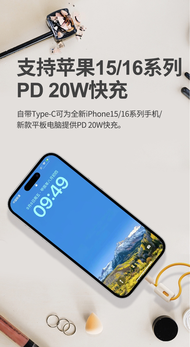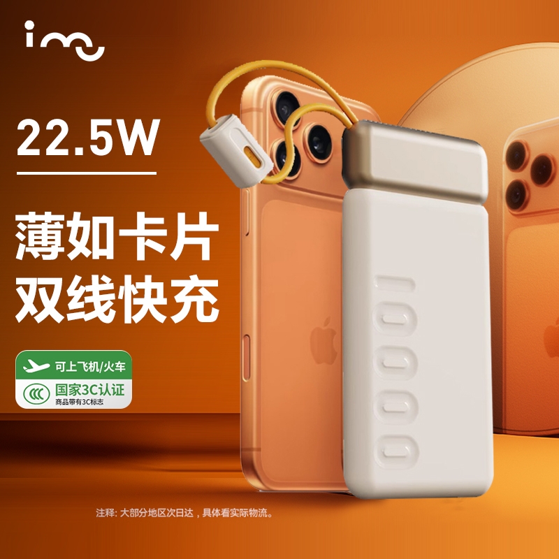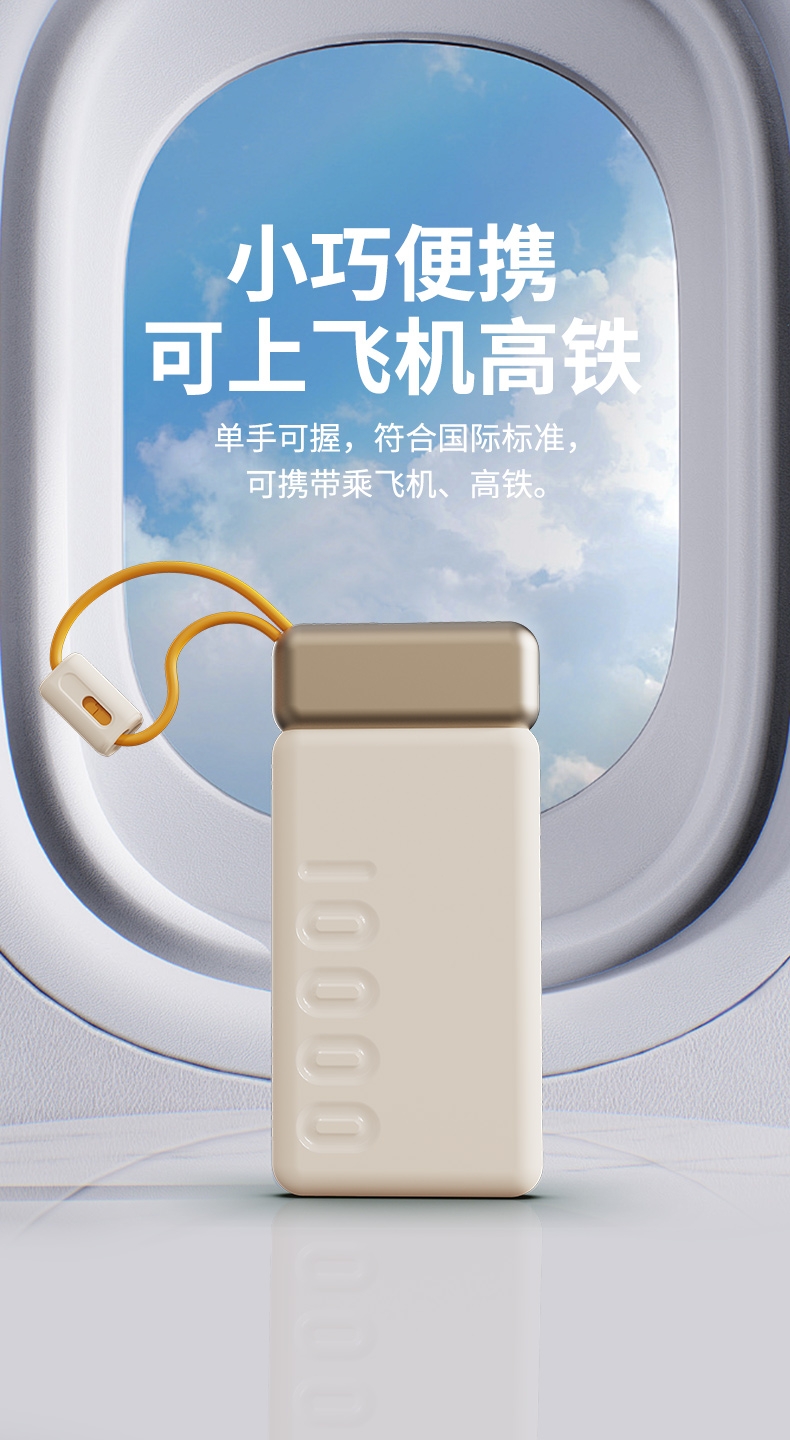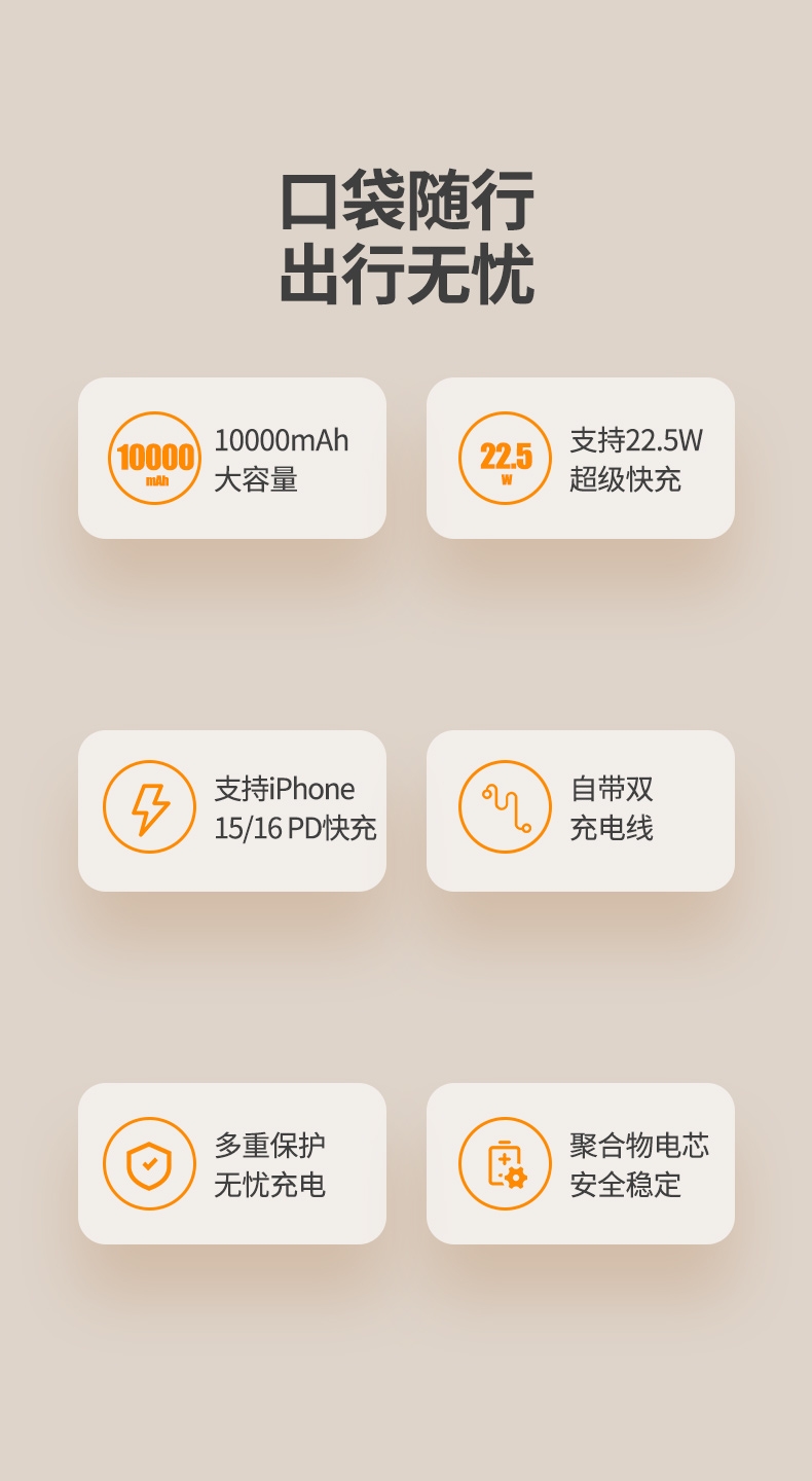 10000mAh高能锂电池,自带双线;LED电量显示;支持华为22.5W超级快充