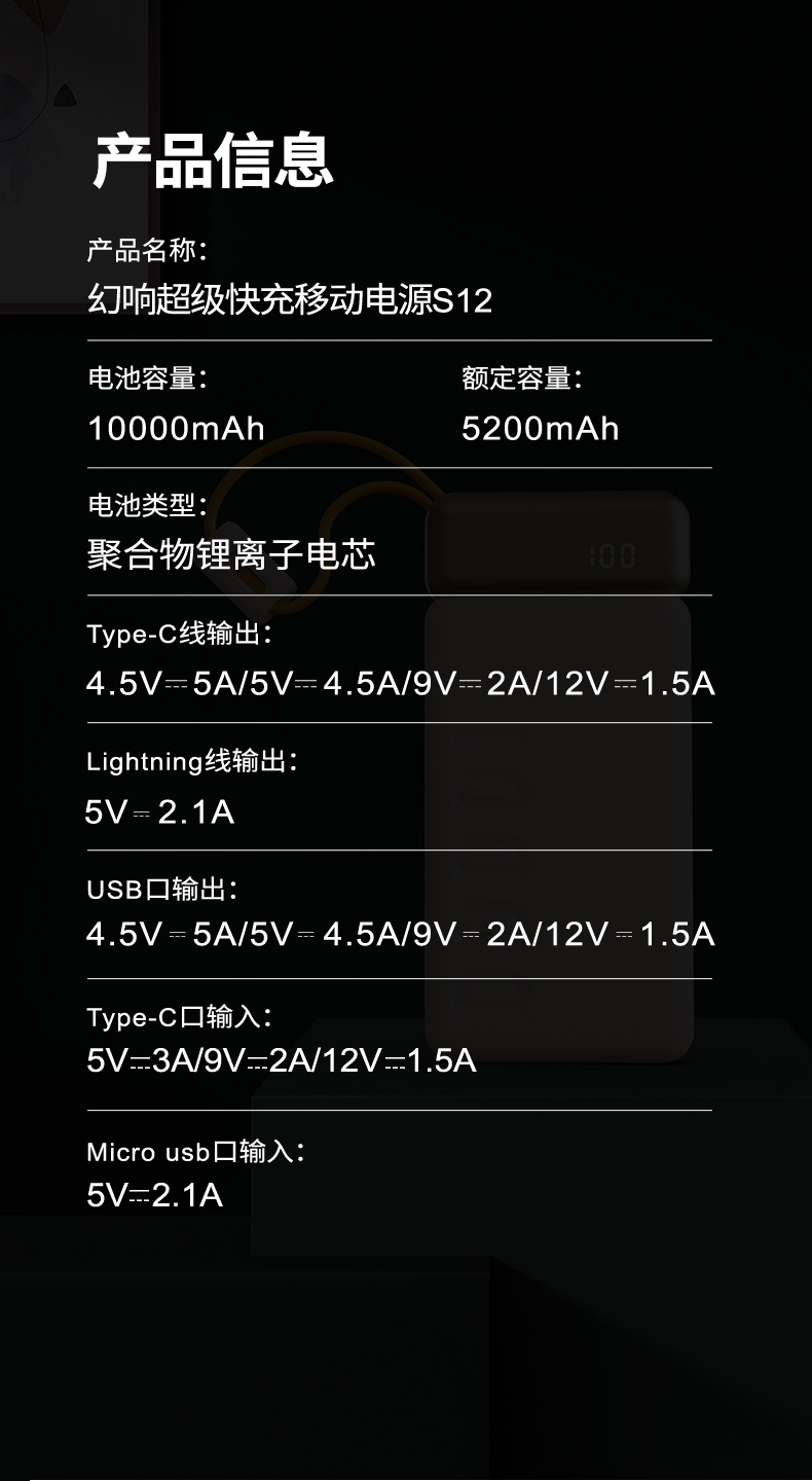 幻响 超级快充移动电源HD-P37