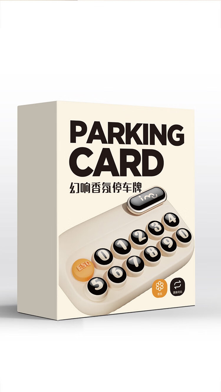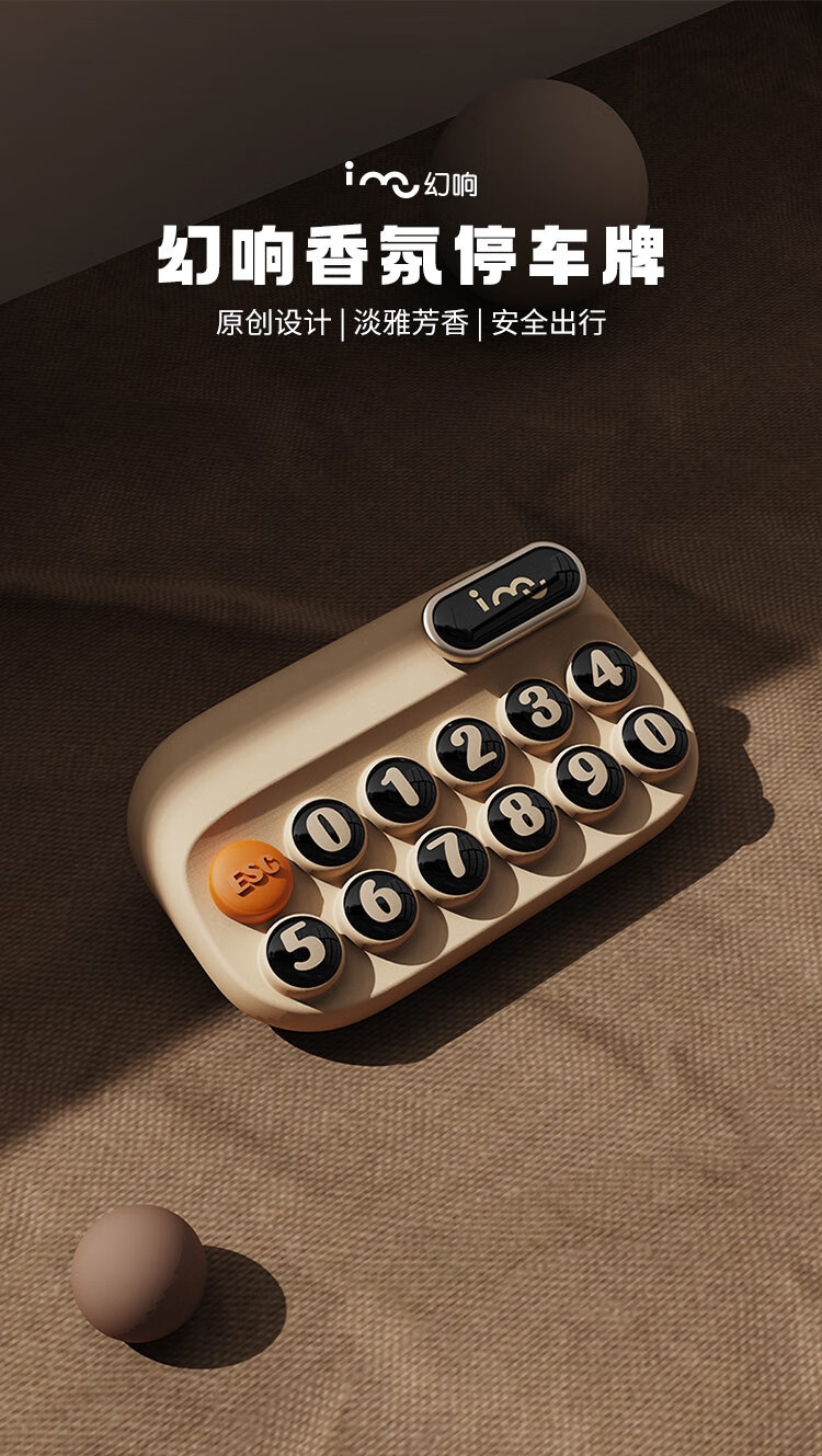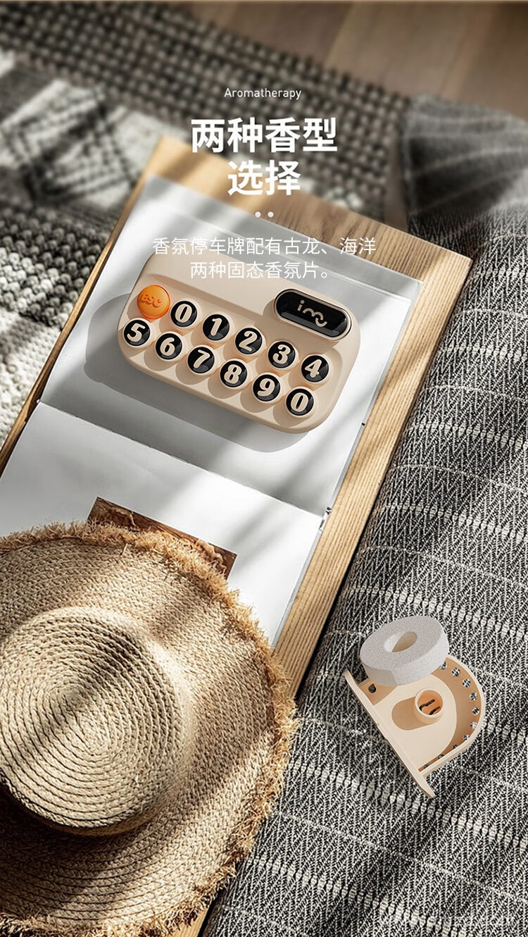 原创复古打字机设计,可隐藏号码,保护个人隐私;;背仓放置可更换固态香氛片,自然清香,安全不洒漏;汽车专用可移胶,可重复使用,移除不留痕迹