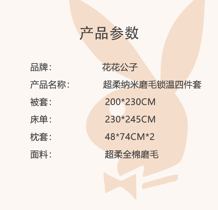 花花公子 超柔纳米磨毛锁温四件套PB-25T7806