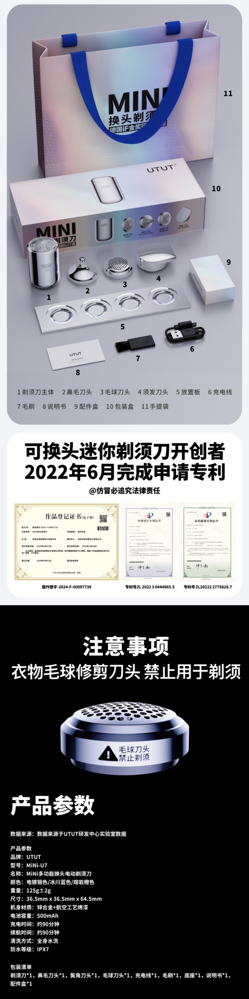 UTUT 魔变多功能迷你剃须刀MINI-U7