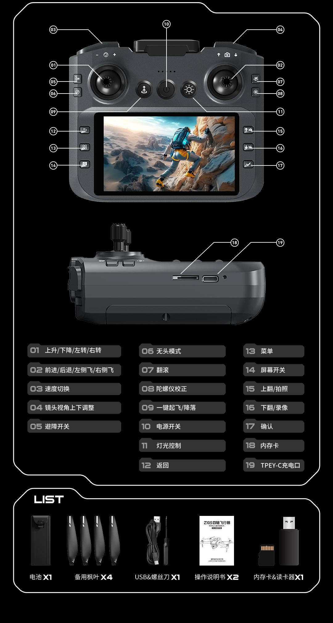 拓蓝者 屏控双摄高清航拍遥控无刷无人机Z105