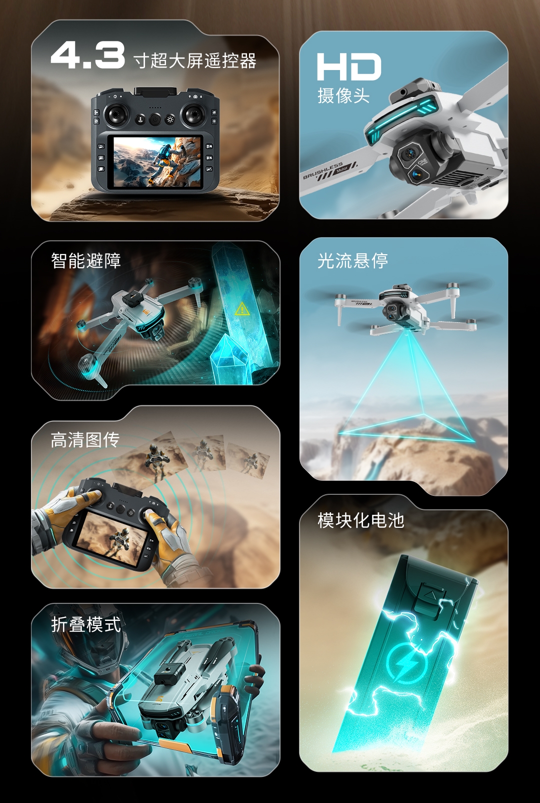 遥控4.3尺寸屏;无刷航拍无人机;高清航拍双摄