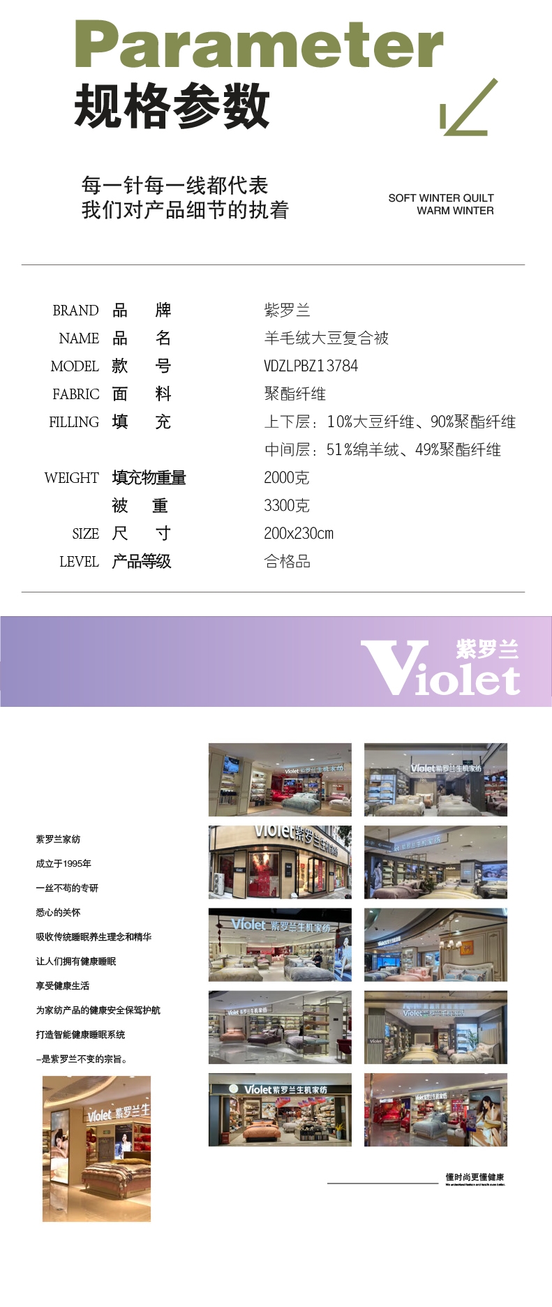 紫罗兰 羊毛绒大豆复合被200*230cmVDZLPBZ13784