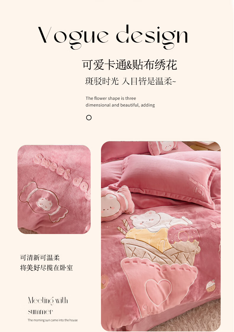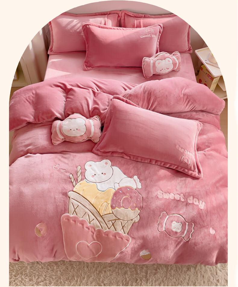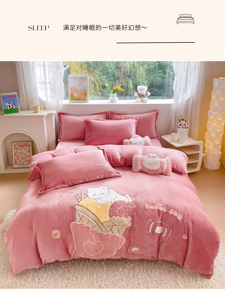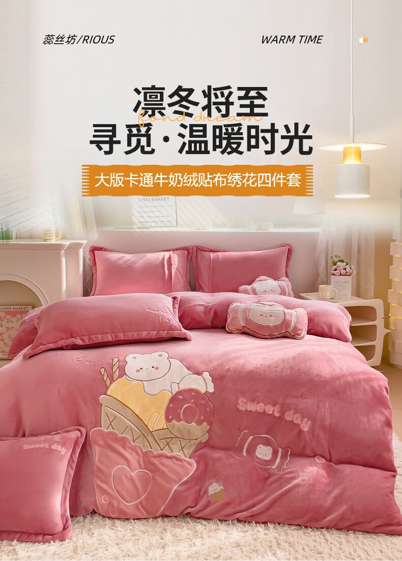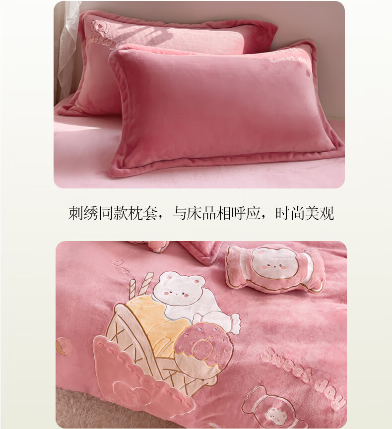 蕊丝坊 卡通高克重蚕丝绒牛奶绒四件套