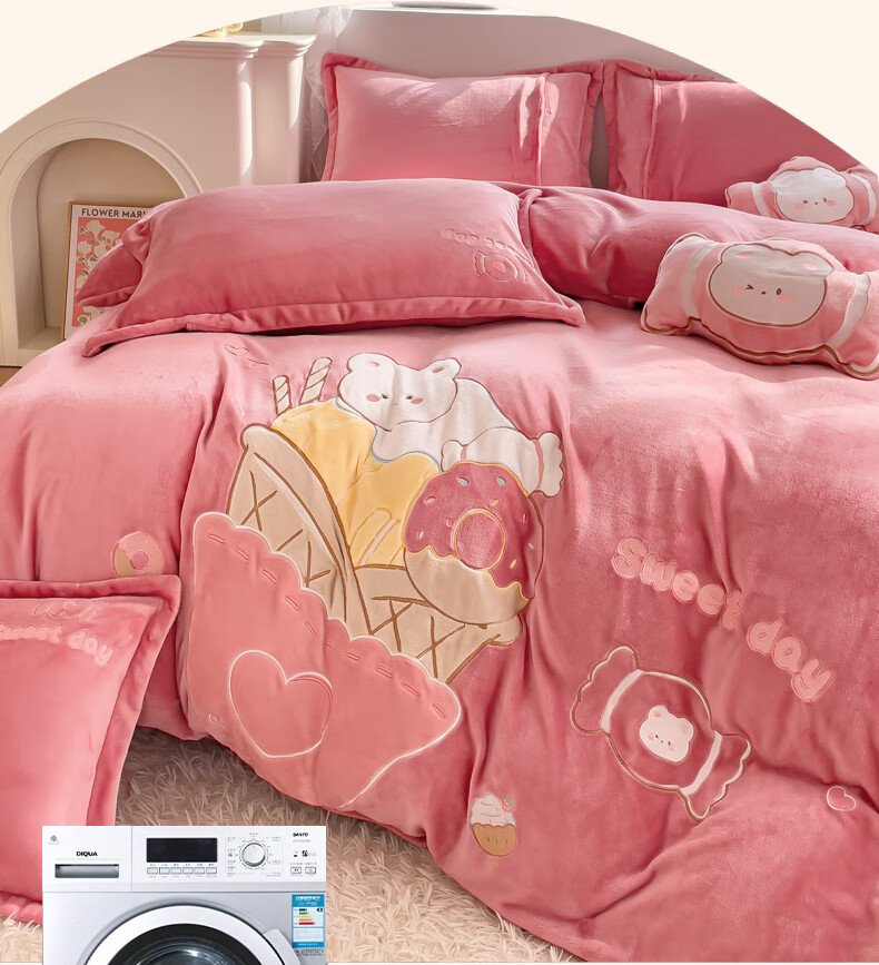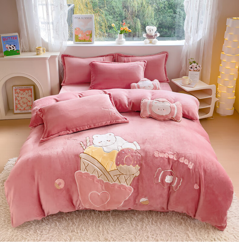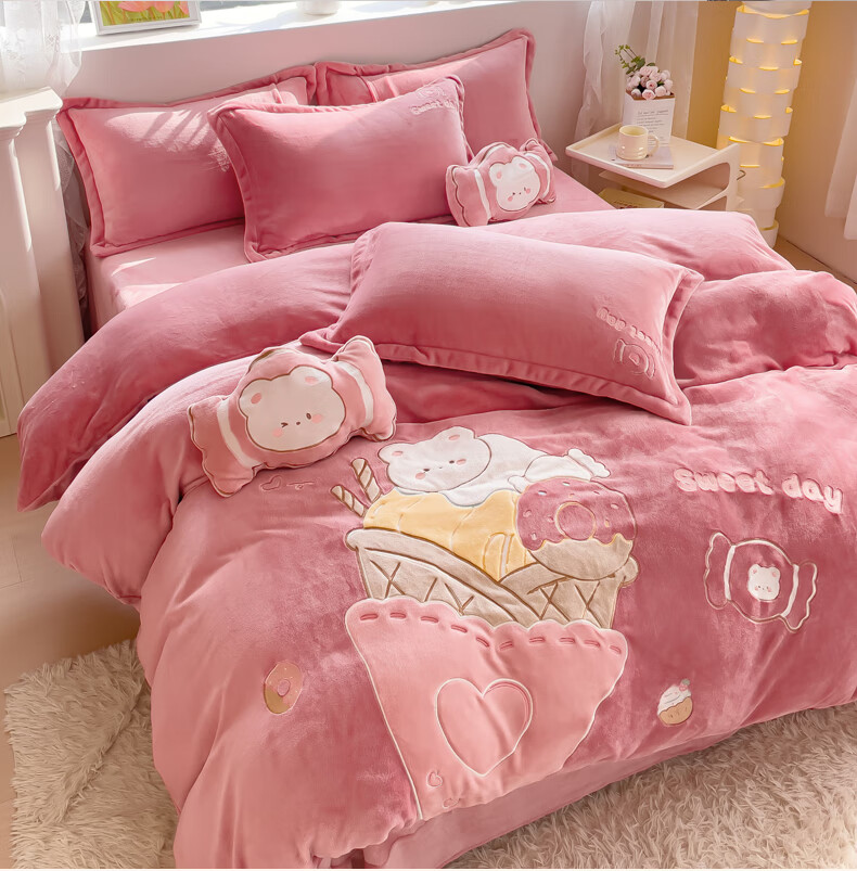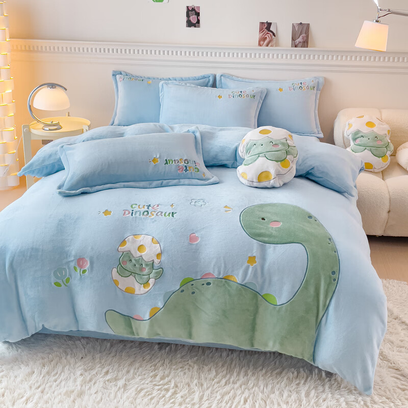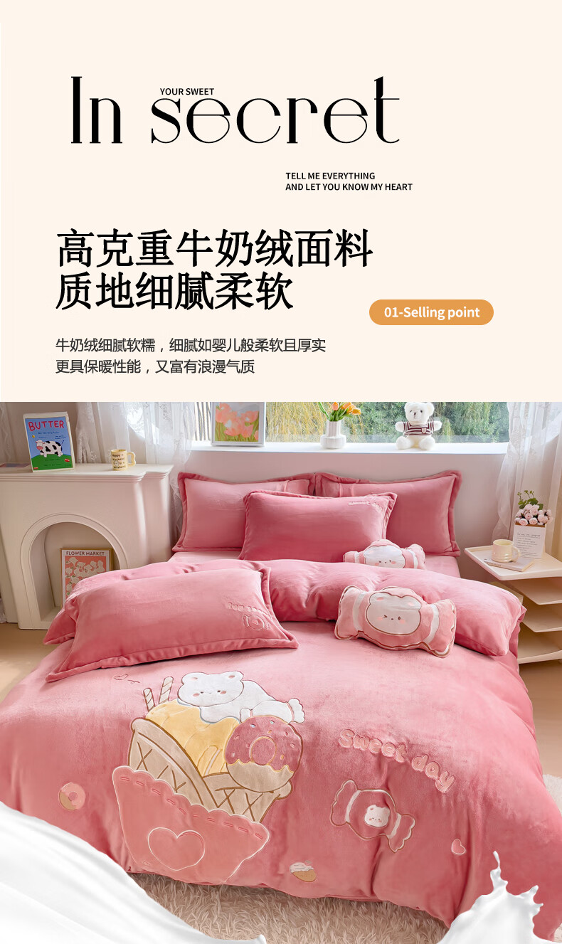 蕊丝坊 卡通高克重蚕丝绒牛奶绒四件套