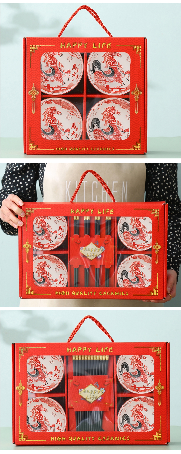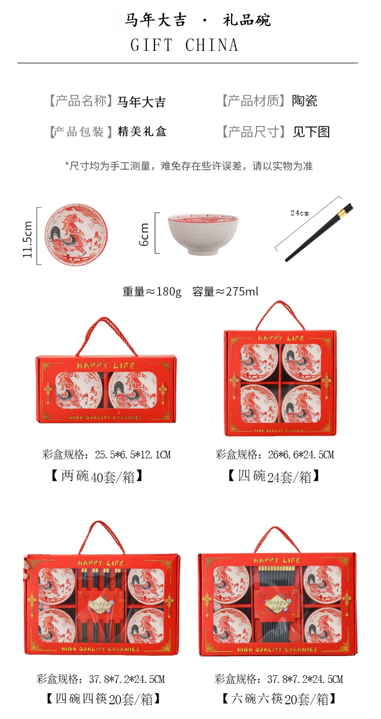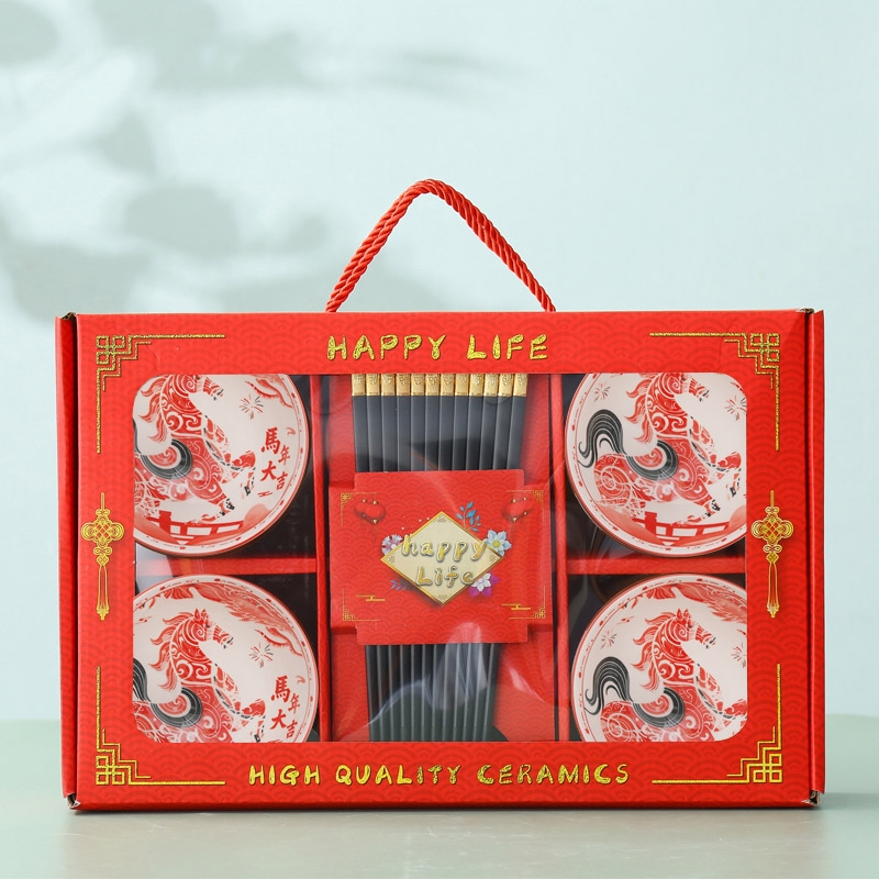 顺聪 马年大吉陶瓷碗筷餐具套装