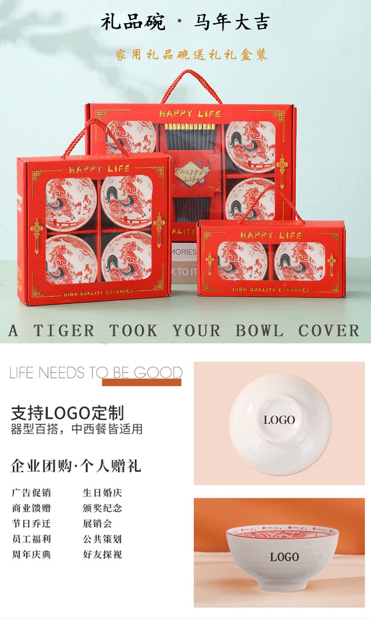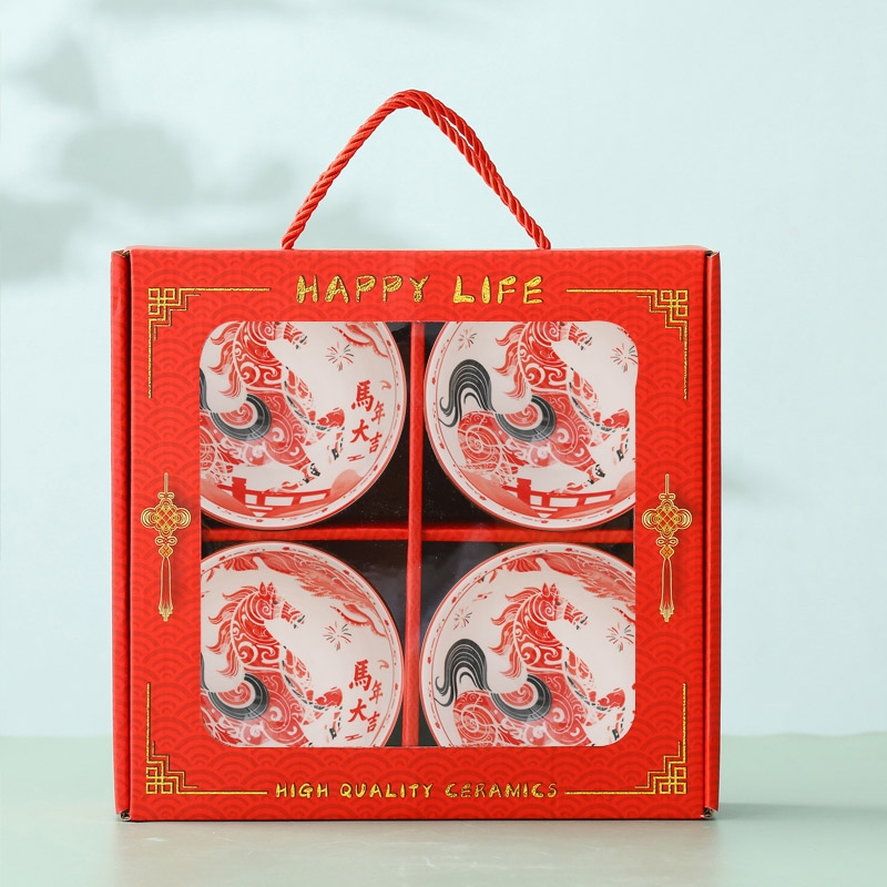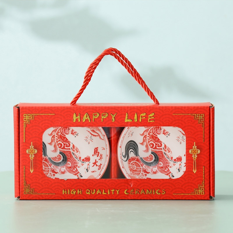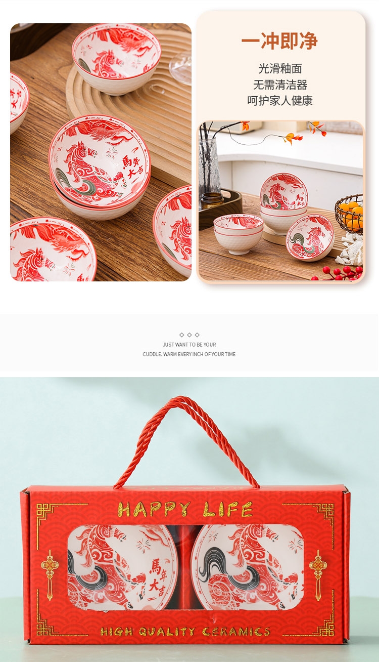 高温烧制,瓷质细腻;网球碗身,可有效防止手滑;喜庆包装盒,送礼首选