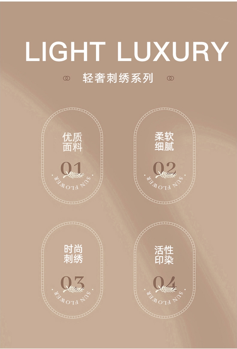 超细纱锦绒棉面料,手感更加柔软细腻;精湛 细密绣花工艺,尽显奢华品质。;精美彩盒,福利首选