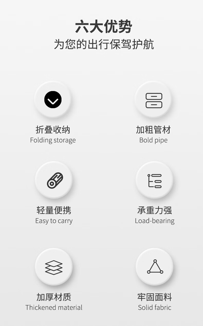 收纳便携:设计可全折叠,体积小巧轻便,一折一叠说走;承重出色:加厚牛津布多重缝接,支架加厚钢管,更受力;有品有范:简约时尚北欧纯色系设计更具气质