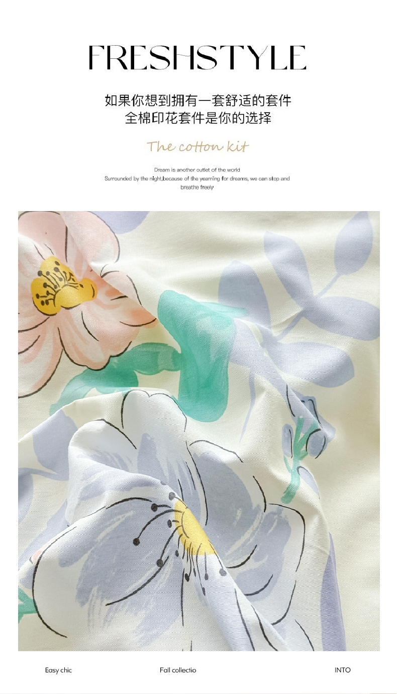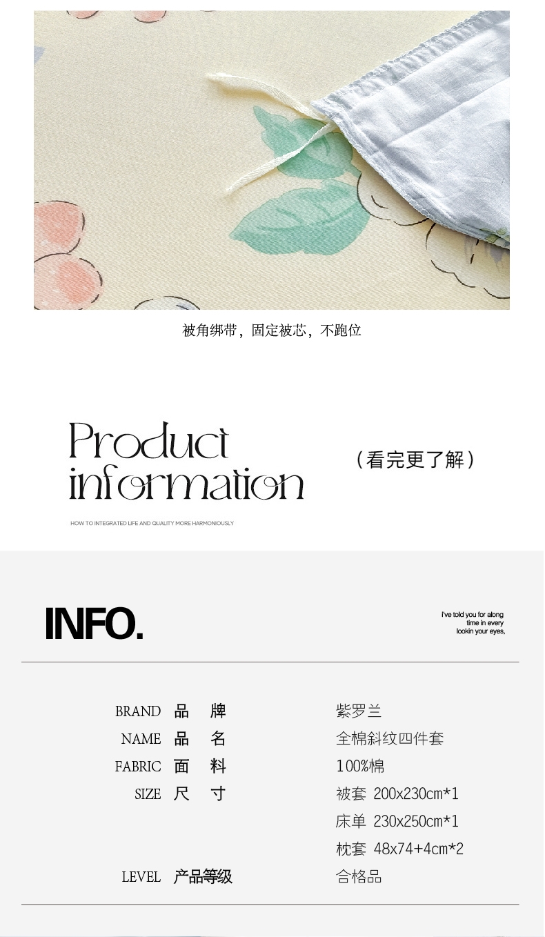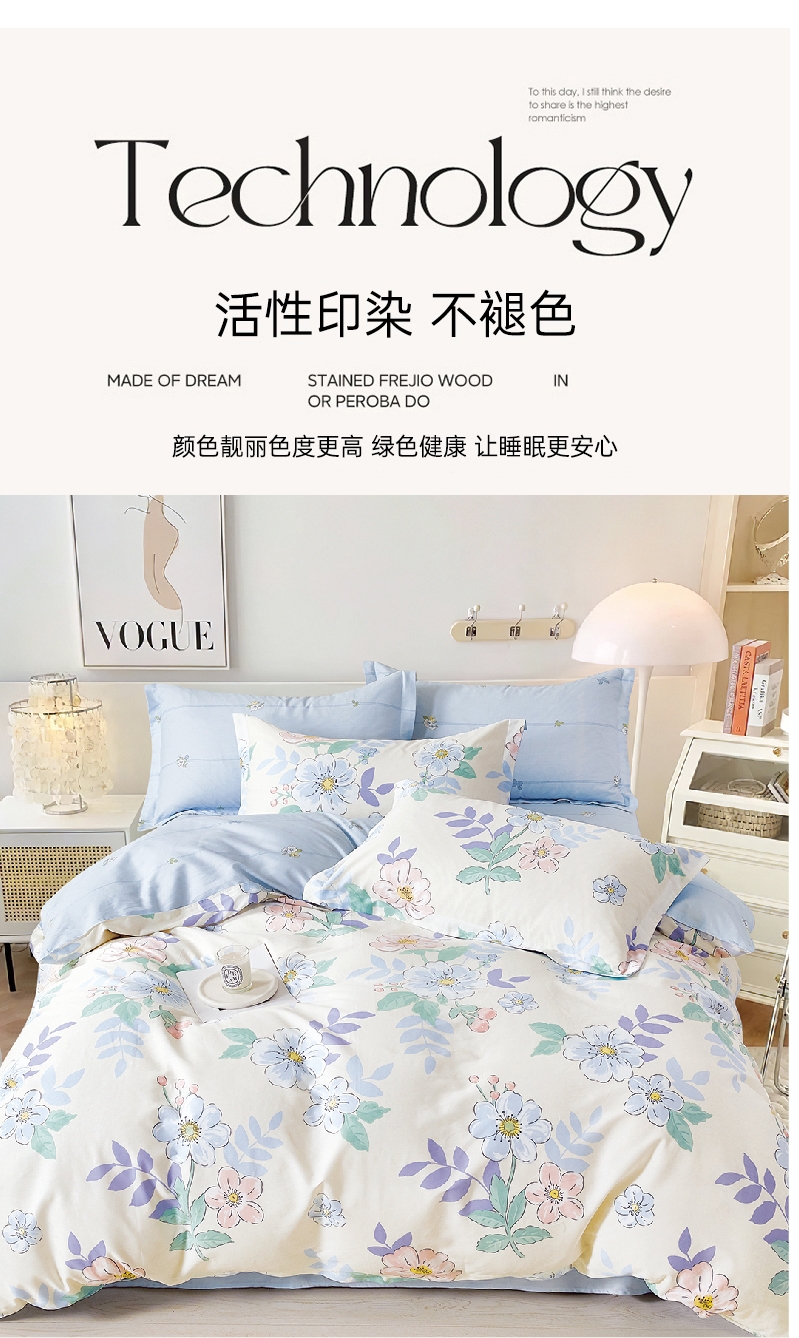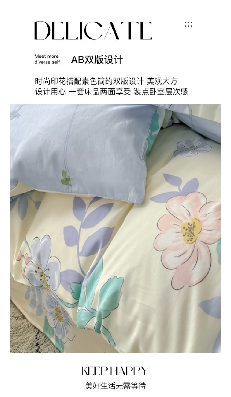 精选优质新疆棉纱、喷气织造,面料柔软度较好;被套枕套全工艺整烫、预缩水处理;天地盖礼盒包装,适合各类礼品需求场景