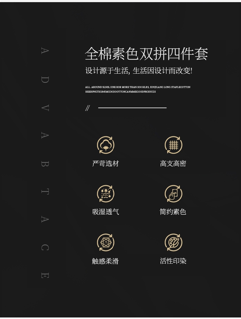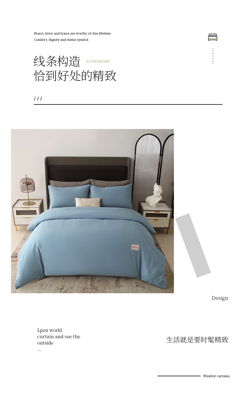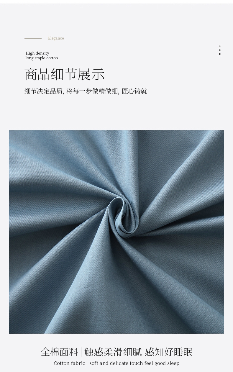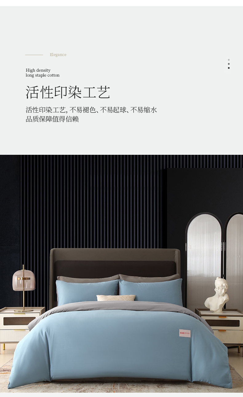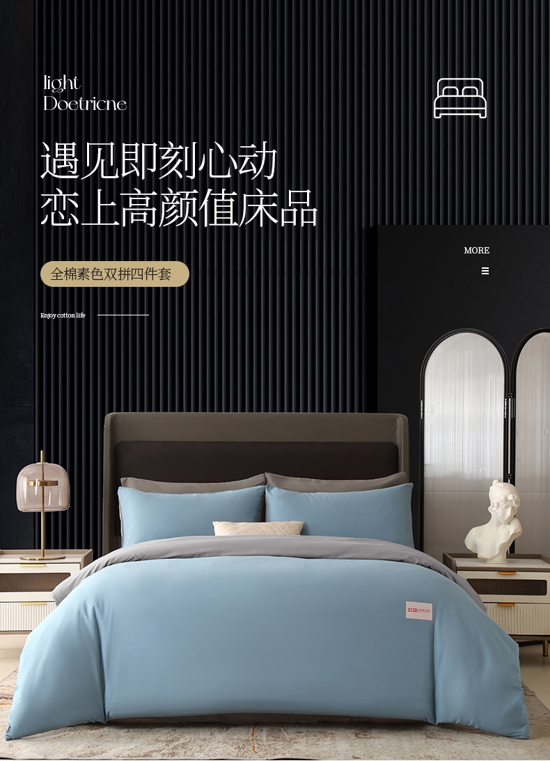 甄选新疆优质棉花,健康活性印染;质朴纯色双拼设计简约而不简单;赋予面料柔软细腻的触感体验;时尚颜值更有内涵