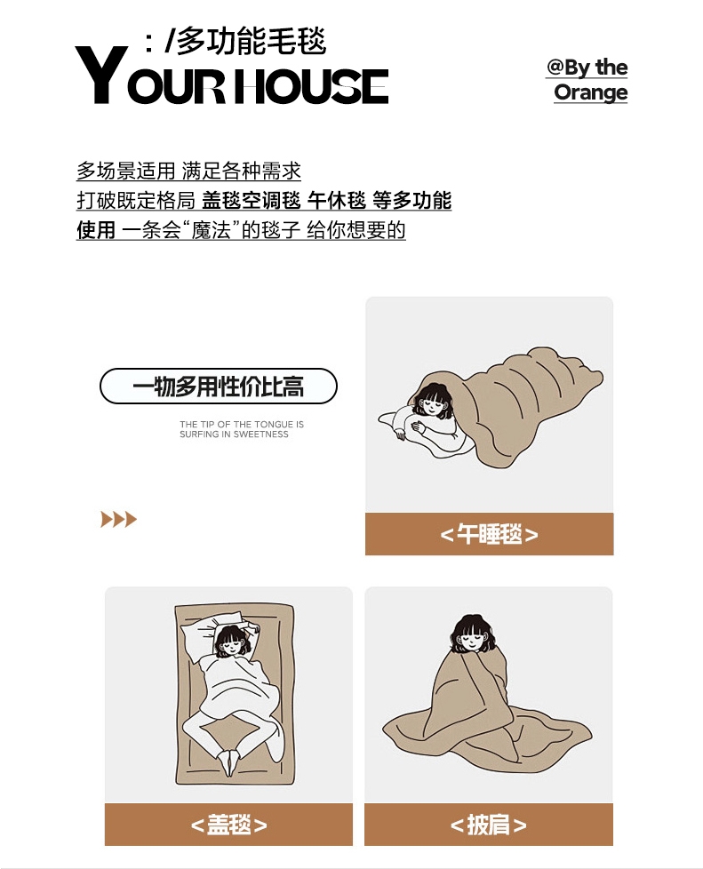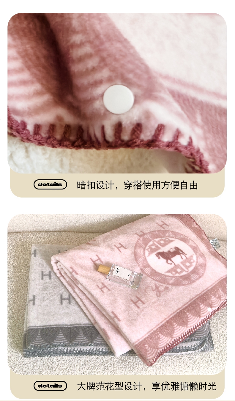 羊绒般手感面料,绒毛柔软细腻;大牌花型设计,优雅与温暖共存;可穿的披肩毯,功能丰富