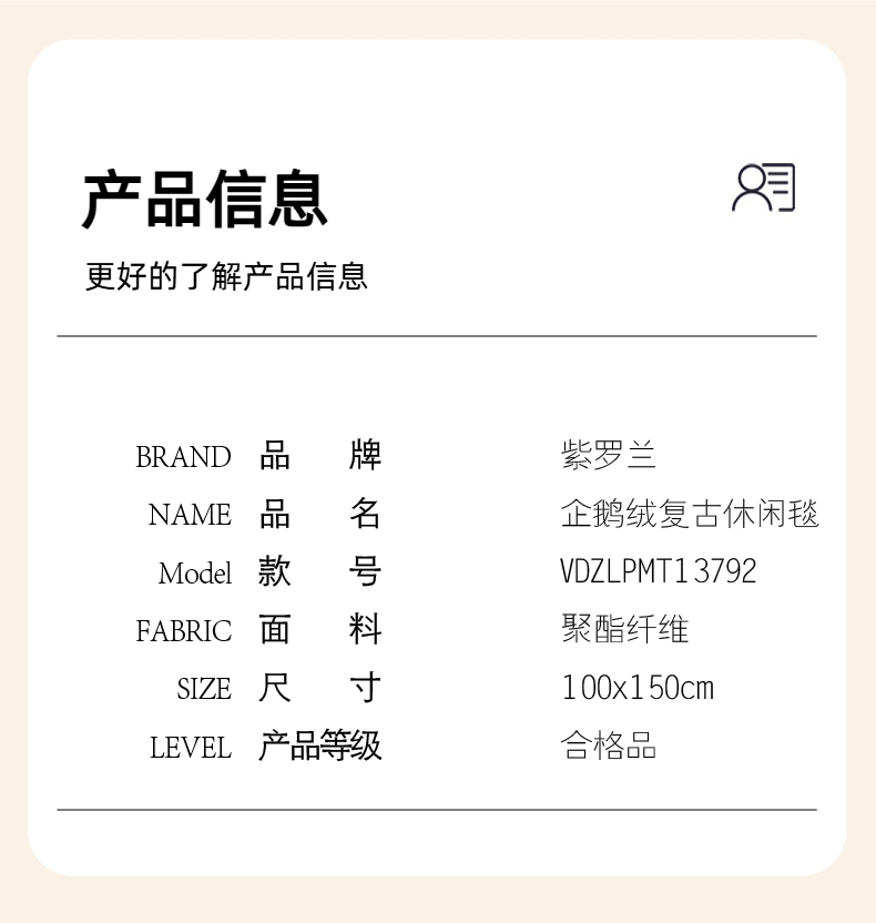 紫罗兰 企鹅绒复古休闲毯VDZLPMT13792